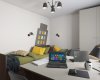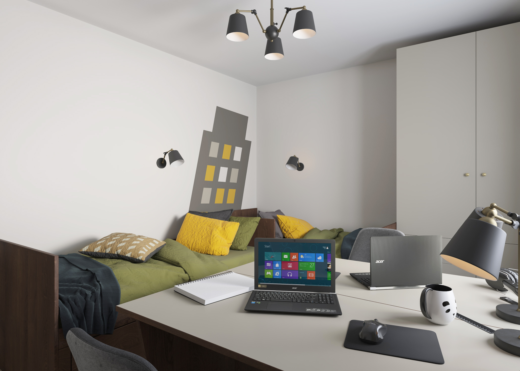 Проект был создан для семьи, где 2 мальчика-подростка, которым уже не нужна двухуровневая кровать, а вот 2 рабочих места обязательно и еще места хранения одежды, учебников и костюмов для танцев. Мальчики, оба занимаются бальными танцами. Комната маленькая, но нам удалось учесть все пожелания и разместить все необходимое. Хозяйка любит зеленый цвет, интерьер в эко стиле категорически отвергла. Она любит города, тем более что она с детьми и по своей работе часто бывает в разных городах, поэтому идея интерьера в каждом помещении свой город.