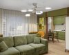 Проект был создан для семьи, где 2 мальчика-подростка, которым уже не нужна двухуровневая кровать, а вот 2 рабочих места обязательно и еще места хранения одежды, учебников и костюмов для танцев. Мальчики, оба занимаются бальными танцами. Комната маленькая, но нам удалось учесть все пожелания и разместить все необходимое. Хозяйка любит зеленый цвет, интерьер в эко стиле категорически отвергла. Она любит города, тем более что она с детьми и по своей работе часто бывает в разных городах, поэтому идея интерьера в каждом помещении свой город.
