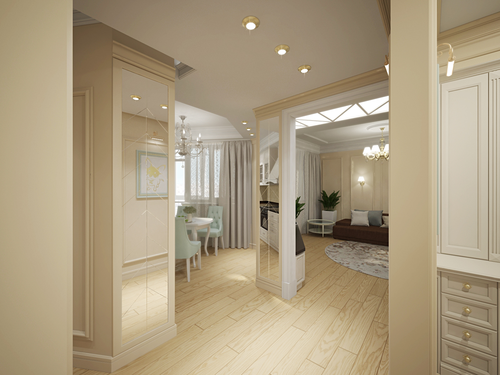 Дизайн квартиры выполнена в стиле современная классика,в мягких песочно кремовых оттенках.Светлый и легкий оттенок визуально расширяет пространство. Кремовый цвет – это не бежевый, не персиковый, не жемчужный и даже не розовый. Он вобрал в себя все эти оттенки. Принято считать, что кремовый – это лёгкий оттенок белого цвета с жёлтым отливом. Его называют классикой теплых тонов. Посмотрите на любое фото интерьера из нашей галереи оно передает тепло и уют этой квартиры. Год завершения проекта: 2017