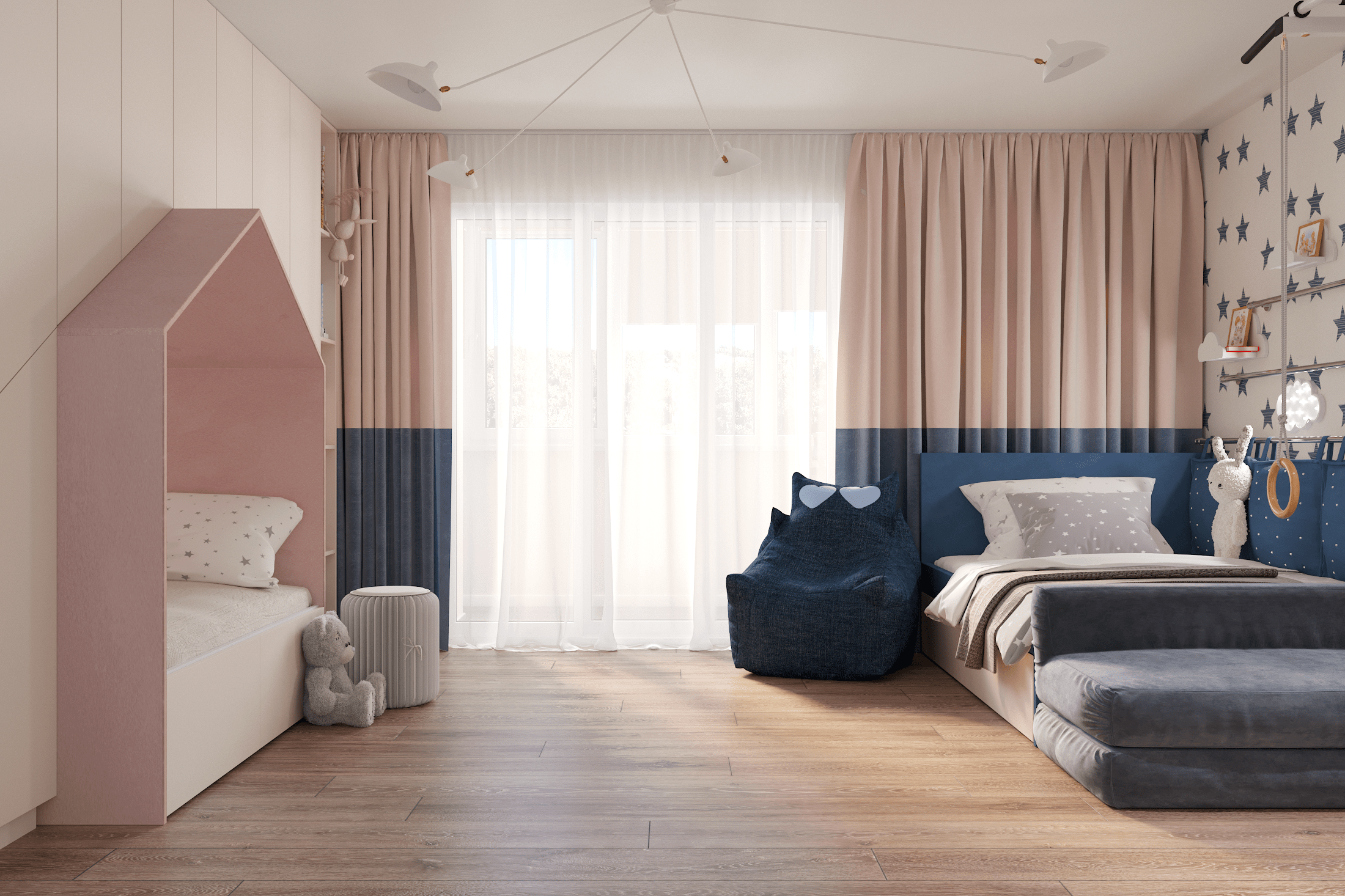 Задачи проекта 1. Внедрить систему "умный дом" с учетом требований заказчика; 2. Предусмотреть различные сценарии освещения в спальне; 3. Учесть имеющиеся предметы в будущем интерьере; 4. Предусмотреть спальное место для взрослого ребенка, приезжающего на выходные; 5. Создать комфортную среду для одного из детей, с особенностями в развитии; 6. Заложить в проект большое количество зон хранения.