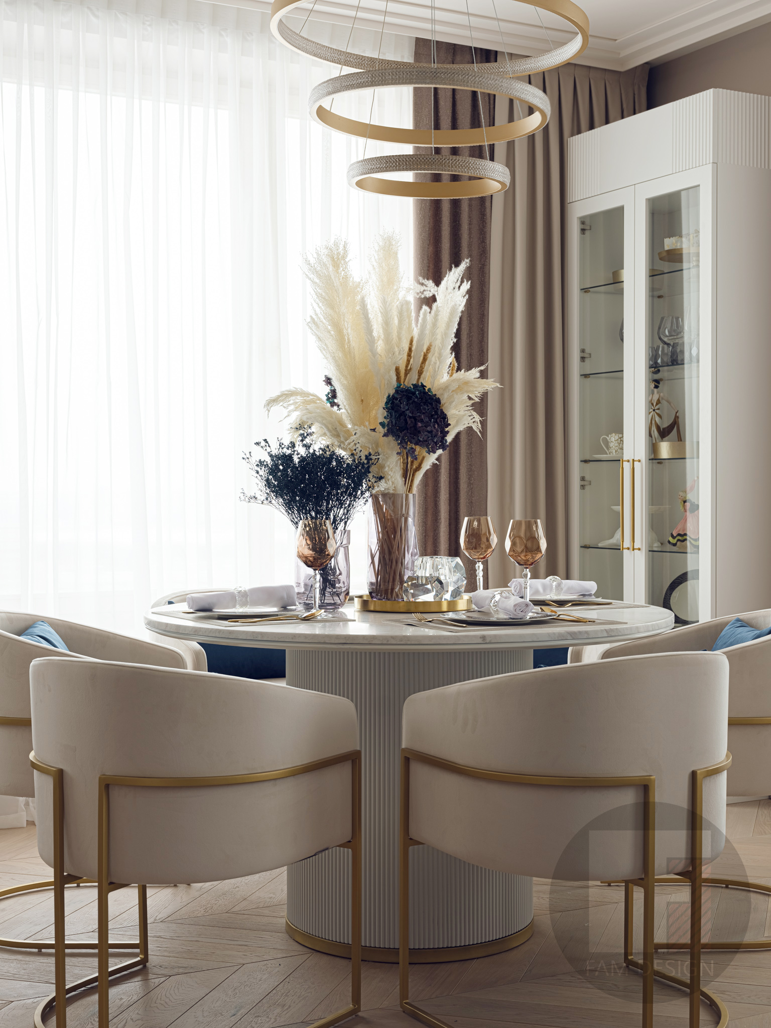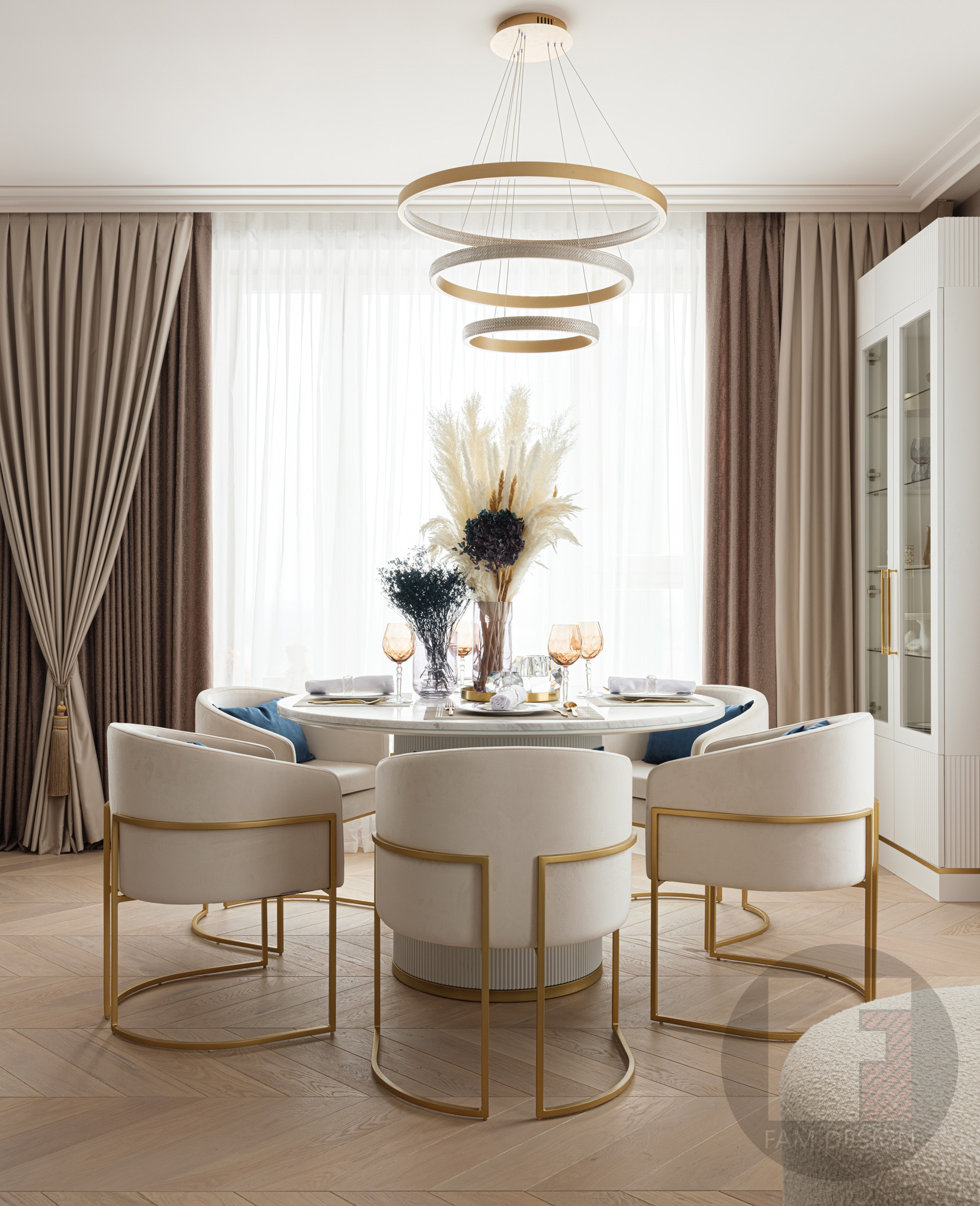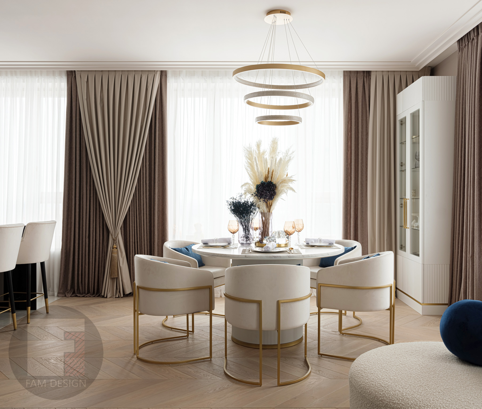 Квартира 165кв.м Объединив 2 квартиры, наши заказчики получили достаточно пространства для большой семьи. В задачах стояло создать парадный интерьер в классическом стиле, приветствовались декоративные элементы, оригинальные решения и яркие цвета. И много света – встроенного и декоративного. Этот проект, поначалу, пошел не совсем гладко – предварительная концепция показалась заказчикам слишком сдержанной, хотелось больше шика. Дизайнерам проекта пришлось пересмотреть свои взгляды на прекрасное и добавить лоску: более сложные фактуры, больше зеркал, больше декоративных элементов цвета латуни, ярче краски. Итоговое решение – компромисс между стремлением дизайнера к современным тенденциям на упрощение и желанием заказчиков получить нарядный классический интерьер. При реализации проекта пришлось потрудиться, чтобы задуманные дизайнерами сложные декоративные элементы не разорили заказчиков: было найдено множество бюджетных решений, состыковывались разные подрядчики, подбирались предметы интерьера отечественного производства, в итоге интерьер получился роскошным, а бюджет проекта - весьма умеренным!