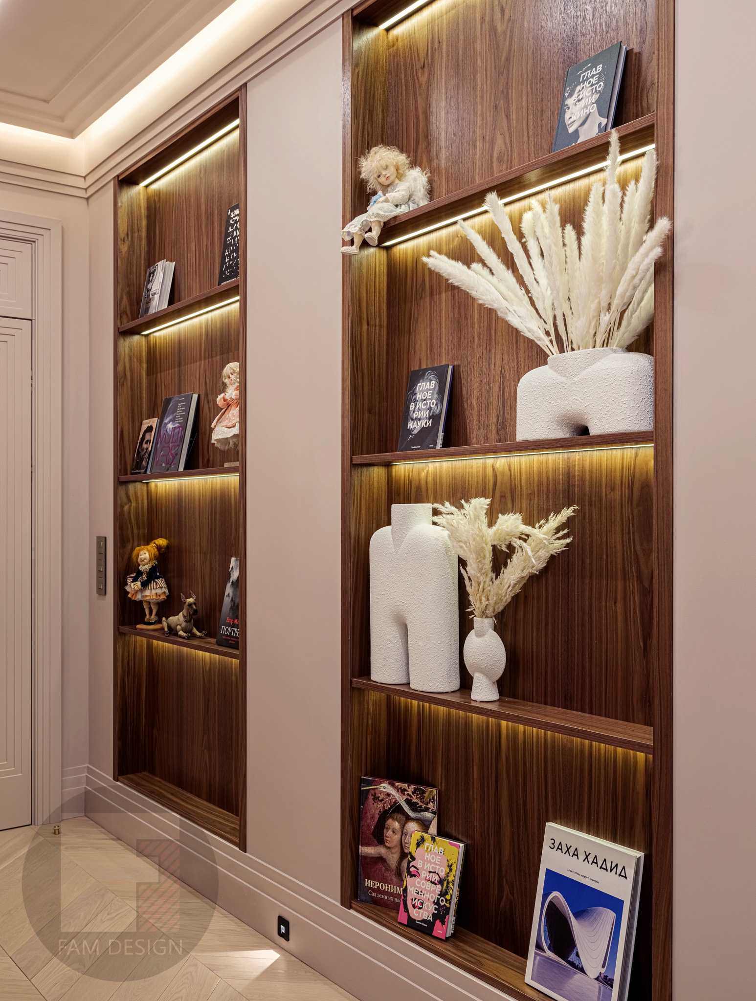 Квартира 165кв.м Объединив 2 квартиры, наши заказчики получили достаточно пространства для большой семьи. В задачах стояло создать парадный интерьер в классическом стиле, приветствовались декоративные элементы, оригинальные решения и яркие цвета. И много света – встроенного и декоративного. Этот проект, поначалу, пошел не совсем гладко – предварительная концепция показалась заказчикам слишком сдержанной, хотелось больше шика. Дизайнерам проекта пришлось пересмотреть свои взгляды на прекрасное и добавить лоску: более сложные фактуры, больше зеркал, больше декоративных элементов цвета латуни, ярче краски. Итоговое решение – компромисс между стремлением дизайнера к современным тенденциям на упрощение и желанием заказчиков получить нарядный классический интерьер. При реализации проекта пришлось потрудиться, чтобы задуманные дизайнерами сложные декоративные элементы не разорили заказчиков: было найдено множество бюджетных решений, состыковывались разные подрядчики, подбирались предметы интерьера отечественного производства, в итоге интерьер получился роскошным, а бюджет проекта - весьма умеренным!