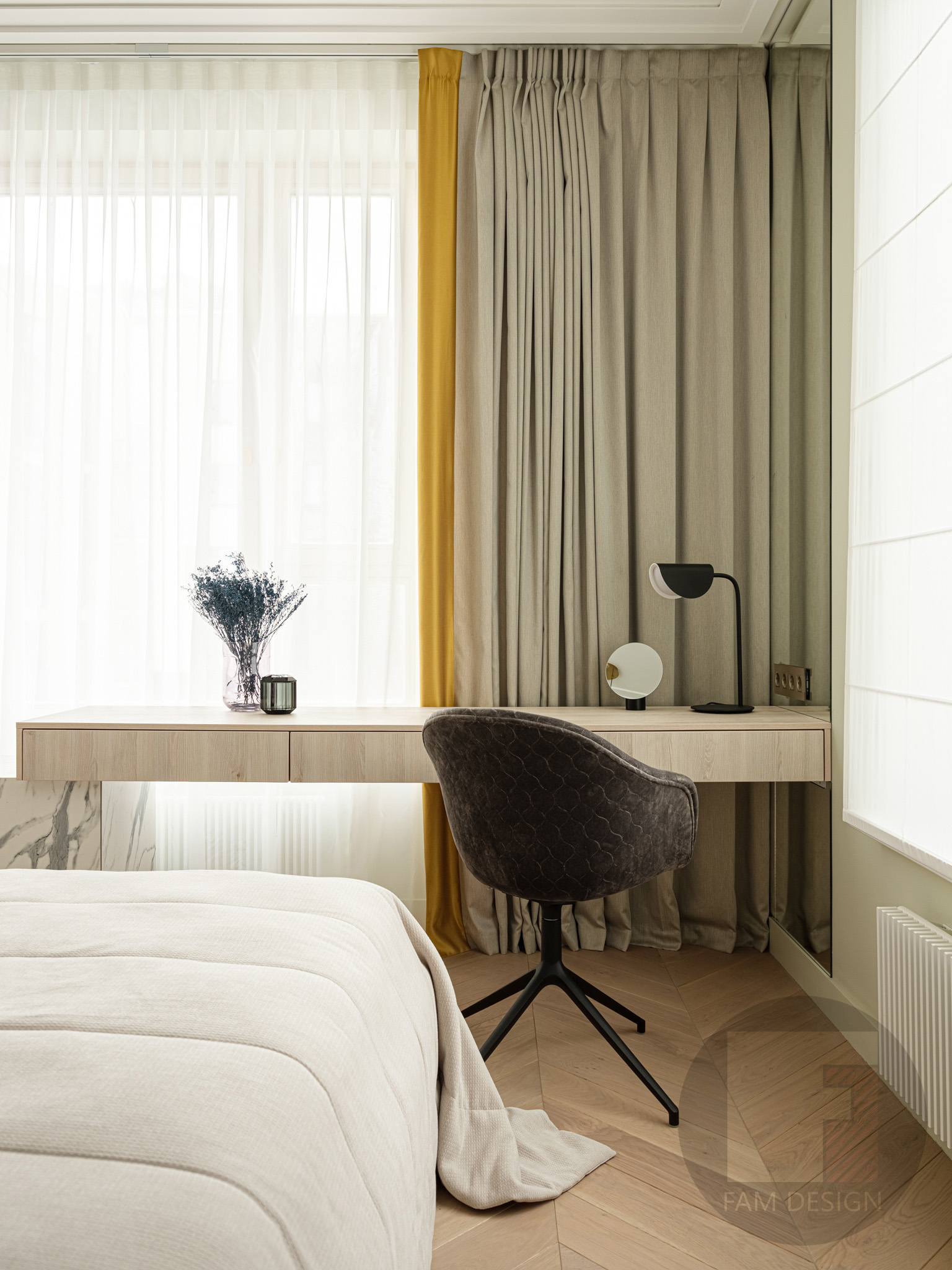 Квартира 165кв.м Объединив 2 квартиры, наши заказчики получили достаточно пространства для большой семьи. В задачах стояло создать парадный интерьер в классическом стиле, приветствовались декоративные элементы, оригинальные решения и яркие цвета. И много света – встроенного и декоративного. Этот проект, поначалу, пошел не совсем гладко – предварительная концепция показалась заказчикам слишком сдержанной, хотелось больше шика. Дизайнерам проекта пришлось пересмотреть свои взгляды на прекрасное и добавить лоску: более сложные фактуры, больше зеркал, больше декоративных элементов цвета латуни, ярче краски. Итоговое решение – компромисс между стремлением дизайнера к современным тенденциям на упрощение и желанием заказчиков получить нарядный классический интерьер. При реализации проекта пришлось потрудиться, чтобы задуманные дизайнерами сложные декоративные элементы не разорили заказчиков: было найдено множество бюджетных решений, состыковывались разные подрядчики, подбирались предметы интерьера отечественного производства, в итоге интерьер получился роскошным, а бюджет проекта - весьма умеренным!