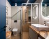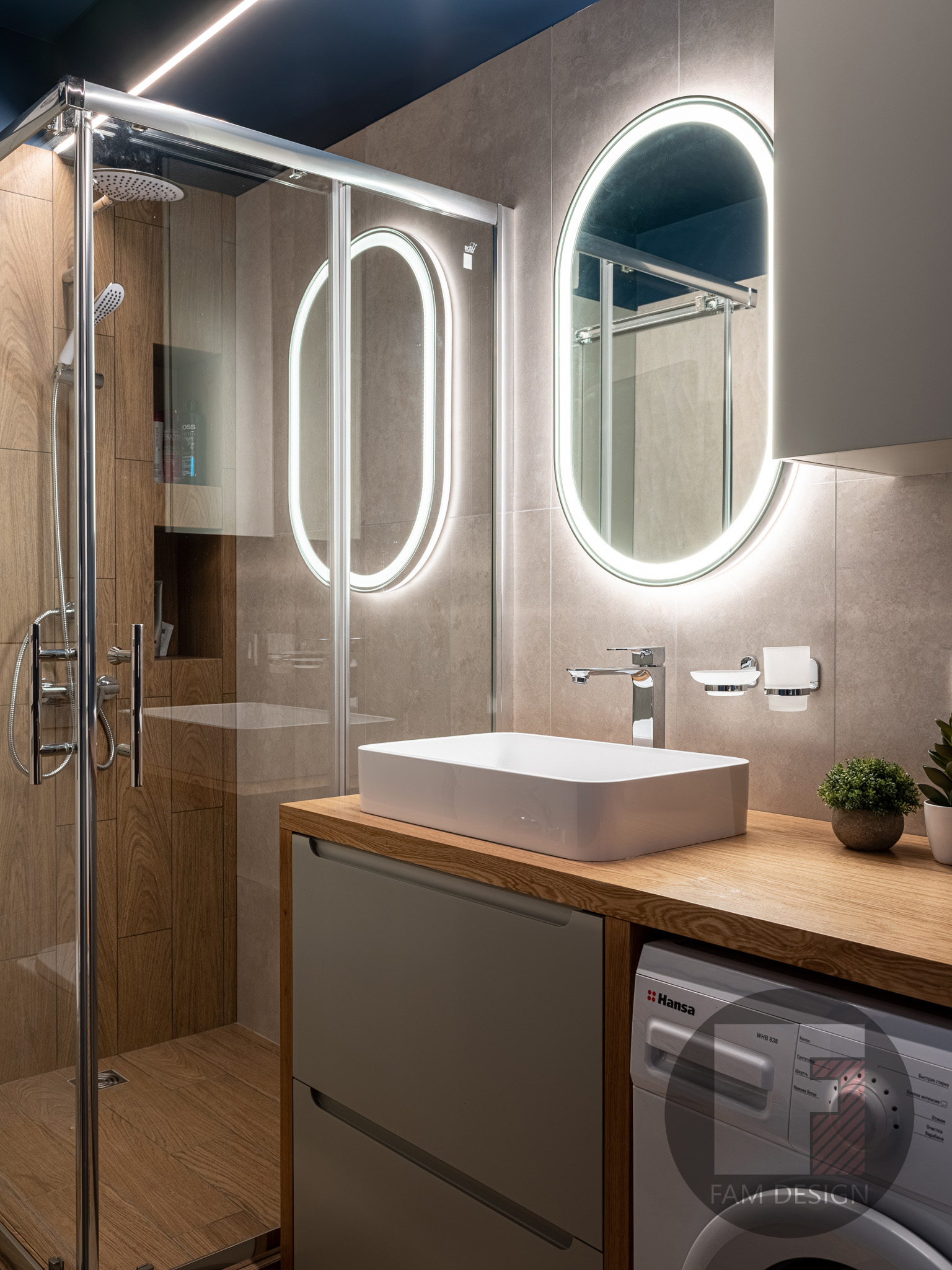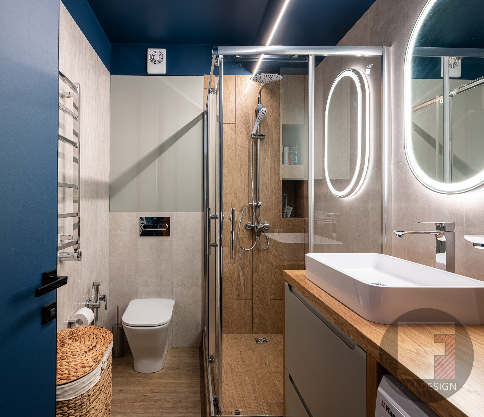 Эти небольшие апартаменты наши заказчики используют во время своих частых визитов в Москву. В задачах стояло создание удобного пространства для работы и отдыха, предусмотреть места хранения и возможность работать или отдыхать не мешая друг-другу, сделать интерьер ярким и современным и уйти от банальных и ставших слишком популярными решений вроде уже поднадоевшего лофта. Маленькое помещение с большим количеством задач? Мы обожаем такие вызовы! Чтобы создать удобную планировку, пришлось поломать голову и рассмотреть множество вариантов. В итоге удалось схитрить и появился диагональный коридорчик, который не только преобразил геометрию помещения, но и позволил разместить все требуемое: 2 просторные гардеробные, удобную ванную комнату с большой душевой кабиной, стиральной машиной и возможностью не чувствовать себя как на складе сантехники). Удалось выгородить отдельную спальню и в ней рабочую зону у окна, светлую, с глубоким подоконником и красивым фоном для съемки. Проект реализован полностью - от идеи до переезда хозяев.