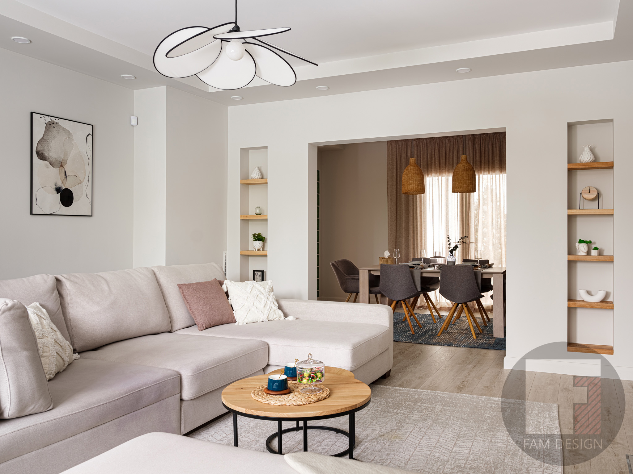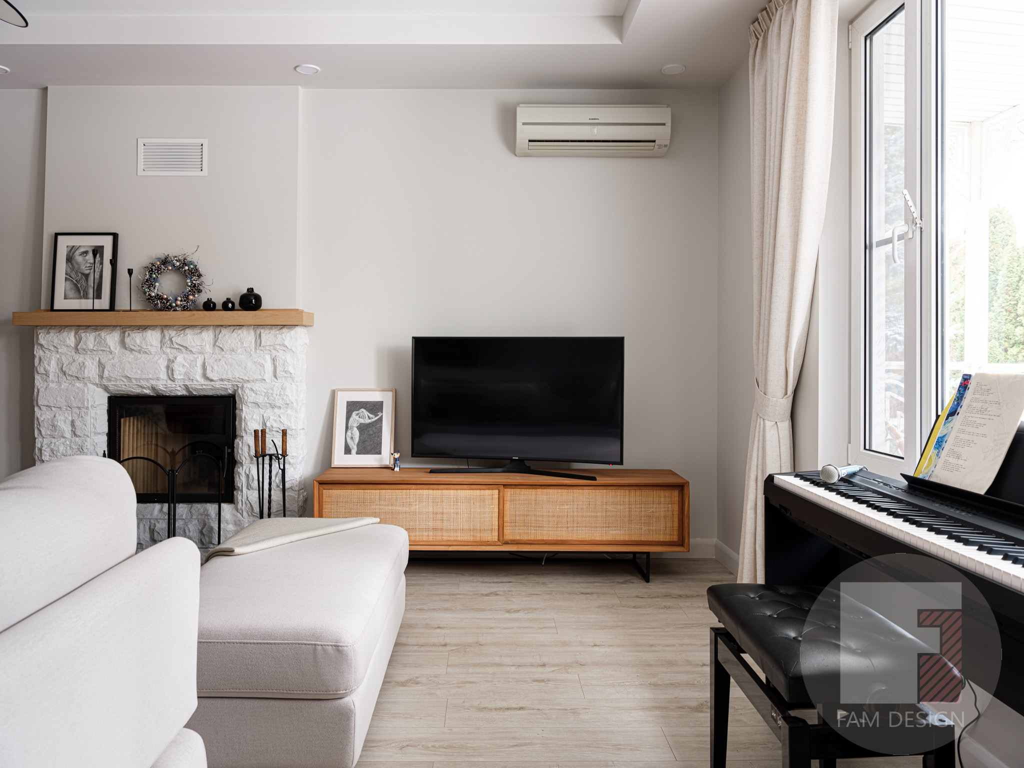Проект частичной переделки с косметическим ремонтом загородного дома для молодой девушки. В задачах стояло создать современный интерьер в скандинавском стиле, легкий, светлый и уютный. Заказчица была готова избавиться от потерявших актуальность элементов отделки из 2000-х, но с условием оставить частично мебель, кухонный гарнитур, без переделки потолков и прочих серьезных вмешательств в конструктив. Проект реализовывался в непростое время, когда нарушились все цепочки поставок зарубежной сантехники и отделочных материалов, пропала мебель и стало сложно приобрести задуманные дизайнером оригинальные светильники. Однако все сложилось на удивление успешно: насобирали по остаткам нужную сантехнику, французский поставщик мебели и декора не подвел, китайские магазины прислали все предметы вовремя и достойного качества, нашлась стильная белорусская мебель из цельного дерева и, несмотря на огромное количество заказов, российские мебельные производства и подрядчики по изготовлению встроенной мебели и конструкций все заказанное прислали и построили по плану. Картины заказали у юной художницы, а декор приобрели на маркет-плейсе. Этот проект – пример того, как в условиях небольшого бюджета и ограниченного времени можно кардинально переделать пространство. Проект реализован полностью, включая авторский надзор, комплектацию, декорирование. Дизайнер: Филиппова Анастасия Фото: Василий Буланов Живопись: Екатерина Степанова