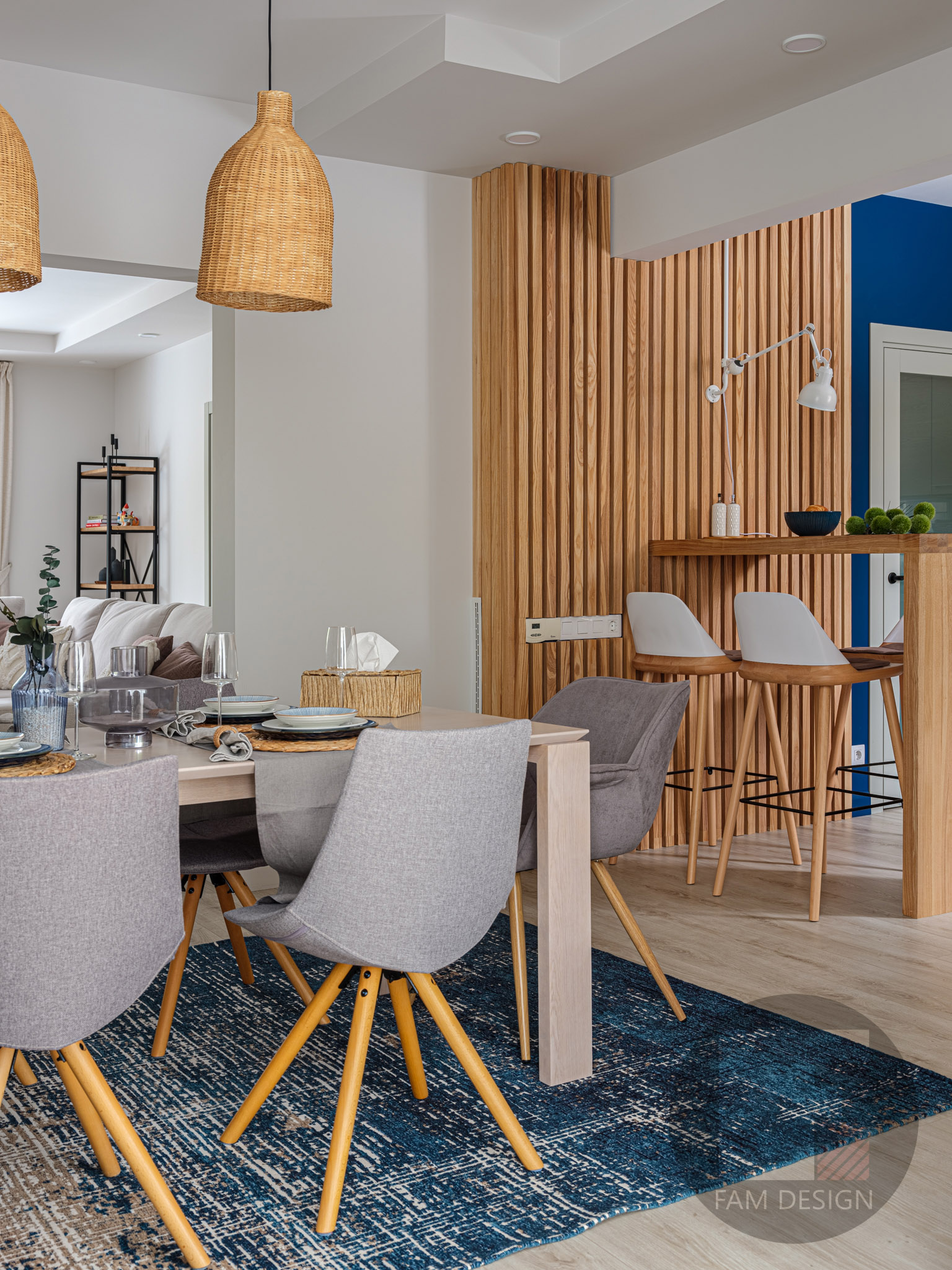 Проект частичной переделки с косметическим ремонтом загородного дома для молодой девушки. В задачах стояло создать современный интерьер в скандинавском стиле, легкий, светлый и уютный. Заказчица была готова избавиться от потерявших актуальность элементов отделки из 2000-х, но с условием оставить частично мебель, кухонный гарнитур, без переделки потолков и прочих серьезных вмешательств в конструктив. Проект реализовывался в непростое время, когда нарушились все цепочки поставок зарубежной сантехники и отделочных материалов, пропала мебель и стало сложно приобрести задуманные дизайнером оригинальные светильники. Однако все сложилось на удивление успешно: насобирали по остаткам нужную сантехнику, французский поставщик мебели и декора не подвел, китайские магазины прислали все предметы вовремя и достойного качества, нашлась стильная белорусская мебель из цельного дерева и, несмотря на огромное количество заказов, российские мебельные производства и подрядчики по изготовлению встроенной мебели и конструкций все заказанное прислали и построили по плану. Картины заказали у юной художницы, а декор приобрели на маркет-плейсе. Этот проект – пример того, как в условиях небольшого бюджета и ограниченного времени можно кардинально переделать пространство. Проект реализован полностью, включая авторский надзор, комплектацию, декорирование. Дизайнер: Филиппова Анастасия Фото: Василий Буланов Живопись: Екатерина Степанова