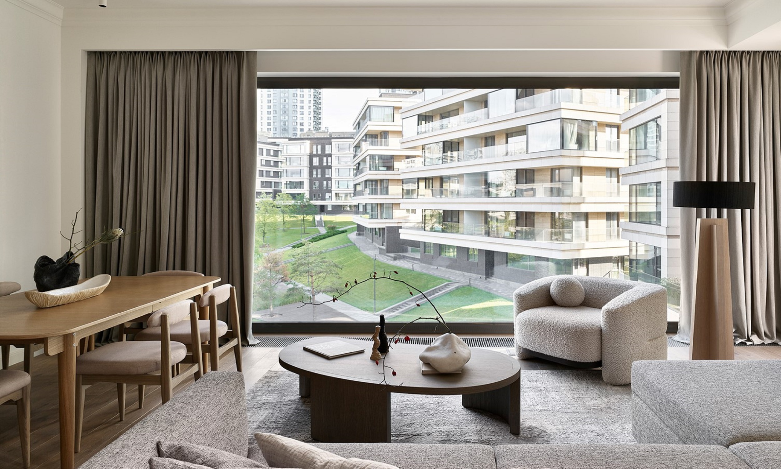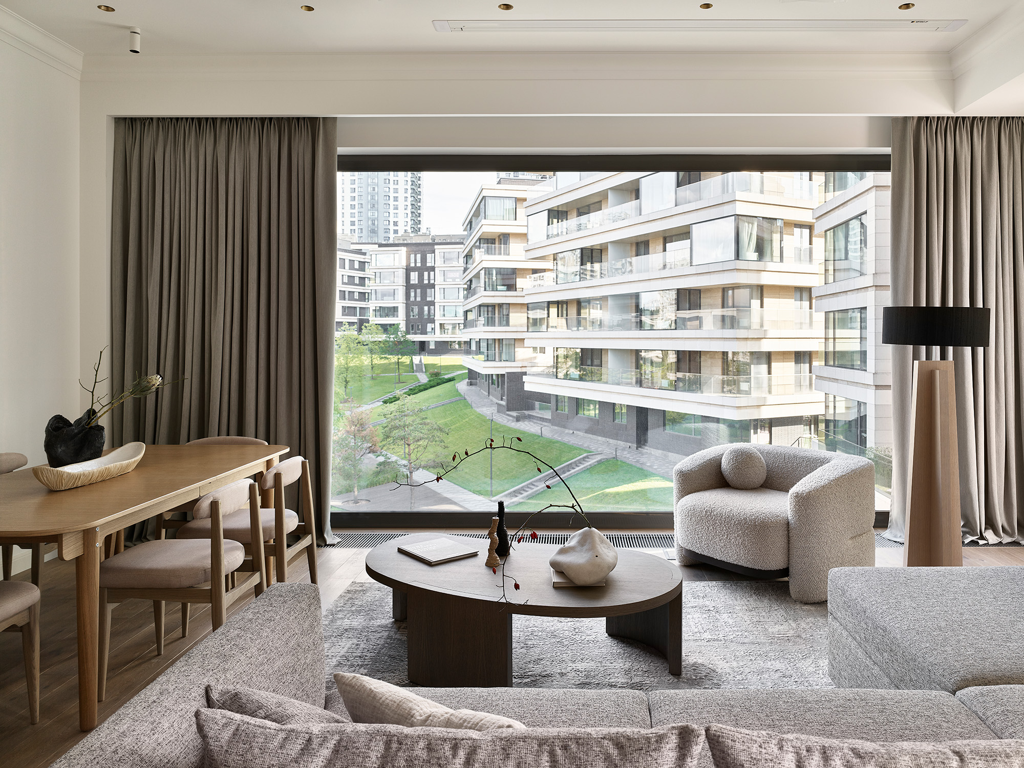 Архитектор Никита Бондарь о проекте: С хозяином этой квартиры мы дружим не первый год: это пунктуальный и дисциплинированный человек, у которого всегда много задач по работе. В семье ожидалось рождение четвертого ребенка, поэтому новое, более просторное жилье стало необходимостью. Одним из главных пожеланий хозяев квартиры было жить в гармонии с природой, находясь при этом в мегаполисе. В итоге нам удалось найти баланс между внешней средой и внутренним пространством и создать нужный визуальный код. Планировка На площади 200 м2 продумано все до мелочей. Так, в большой гостиной удобно собираться всей семьей, здесь стоит фортепиано, чтобы устраивать музыкальные вечера. Инструмент перевезли из старой квартиры, на нем играют и взрослые, и дети. Вообще, эмоциональными акцентами этот интерьера стали музыкальные инструменты - символ семейного наследия. Для каждого из них выбирали особенное место. Кухню отделяют от гостиной распашные двери, при желании их можно закрыть, скрыв рабочую зону от глаз. В коридоре разместилась домашняя библиотека, в которой хранится много интересных изданий. Комната двух сыновей оборудована антресолью, которая стала пространством для игр. Внизу расположено две кровати и один стол, но с двумя рабочими местами, чтобы мальчики не мешали друг другу заниматься. Комната девочек получилась нежной и воздушной, ее пространство не перегружено предметами, что подчеркивает изящность линий и форм.