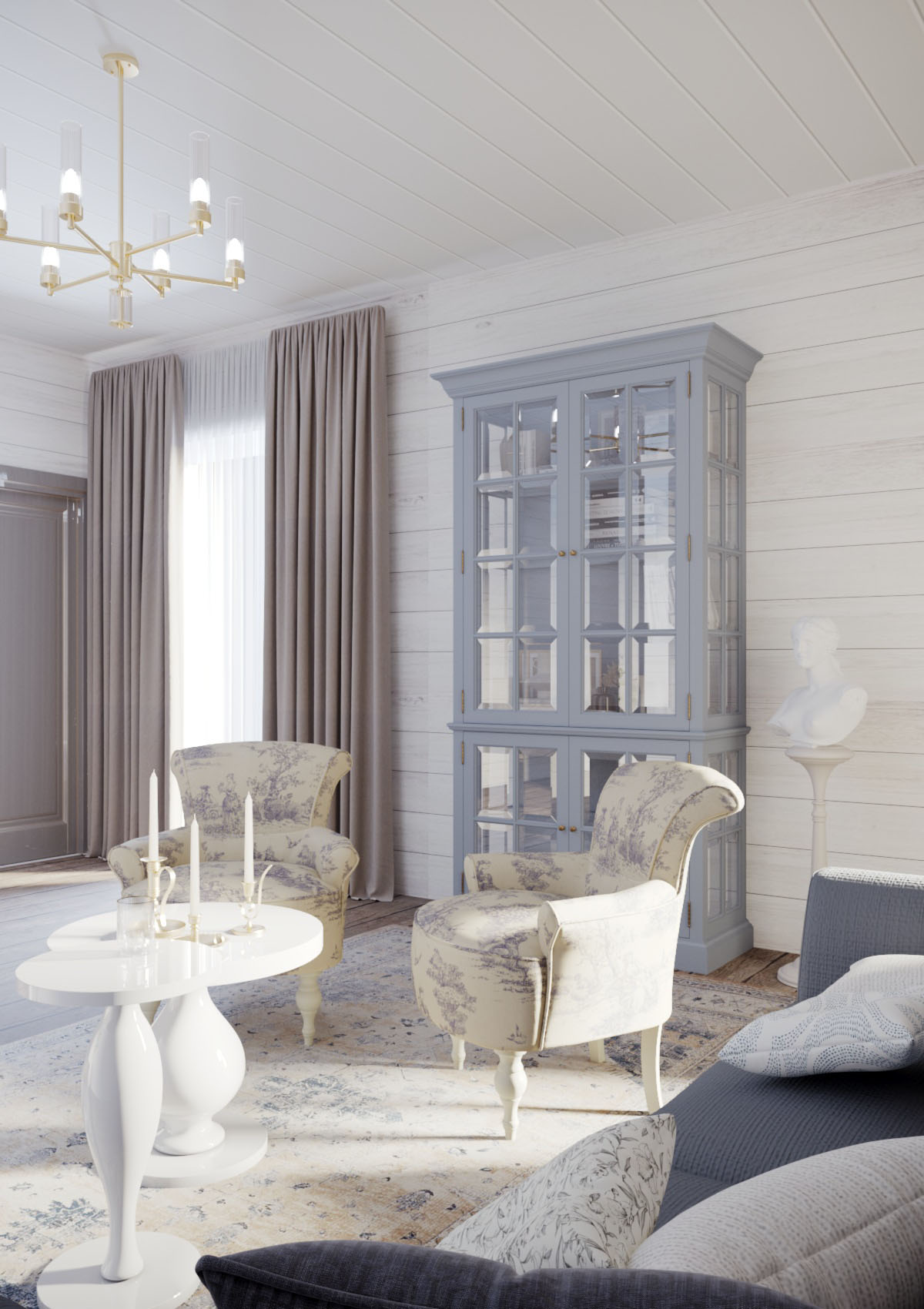 Дом выполнен в классическом стиле. Заказчики брали полный проект со всеми чертежами, визуализациями и авторским надзором. Светлые тона- это было главное пожелание. Мне кажется они отлично передают легкость , эстетику и отлично сочетаются с природным пейзажем за окном.