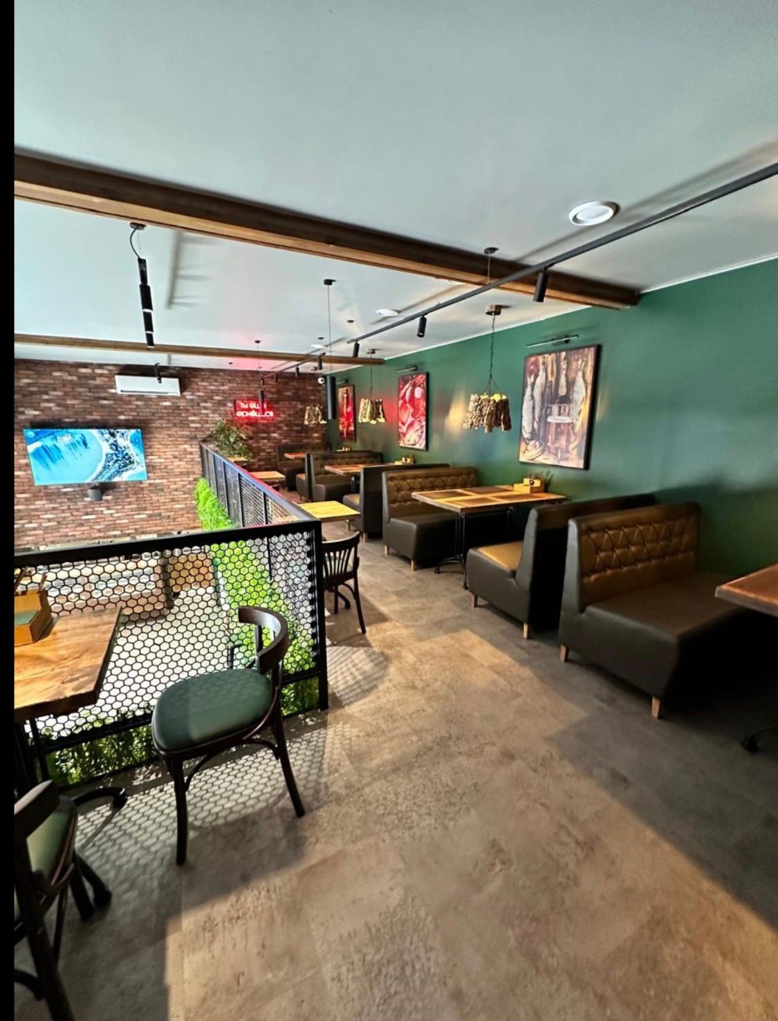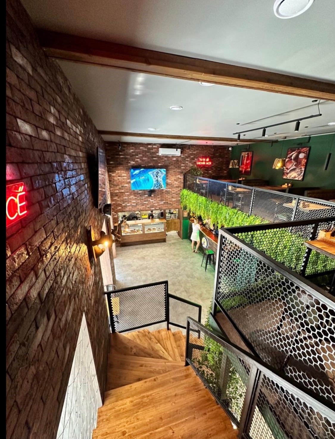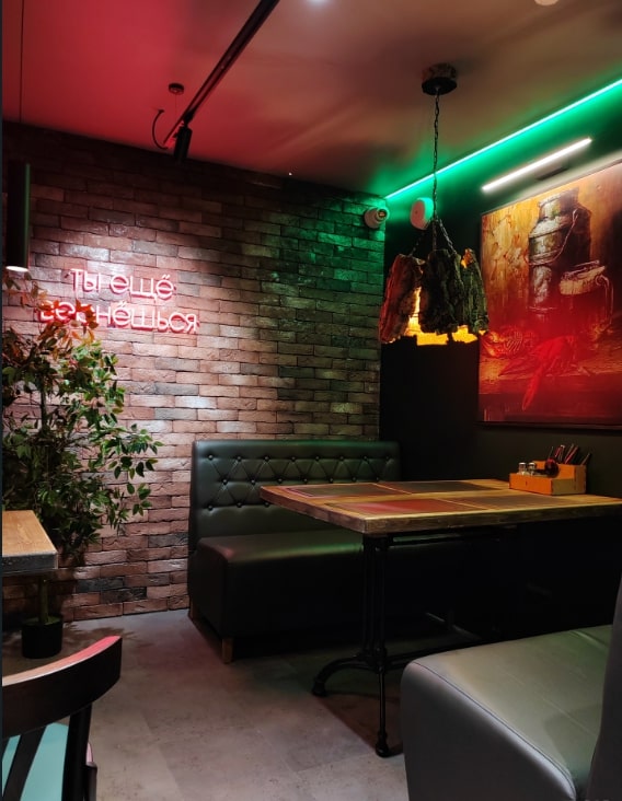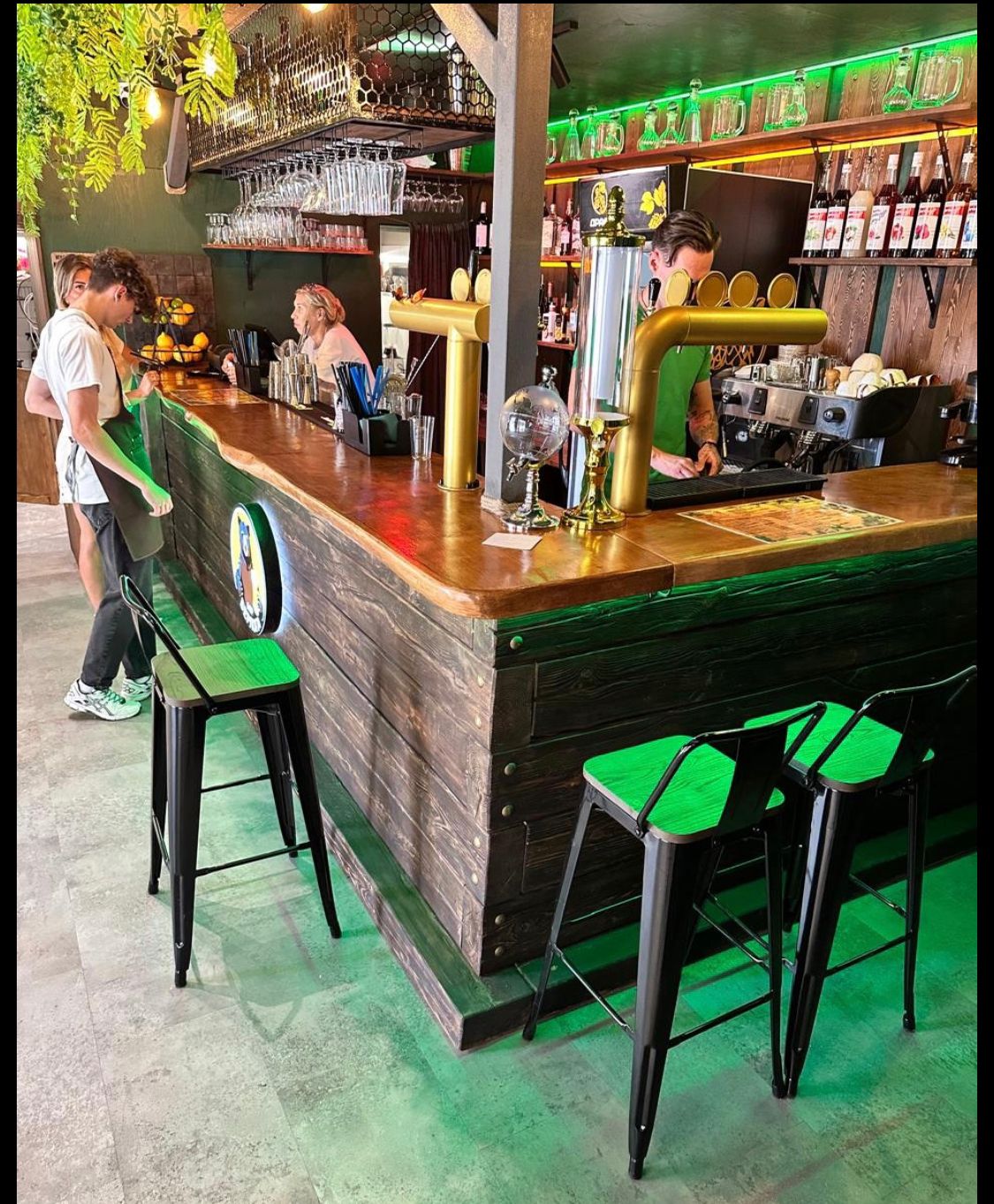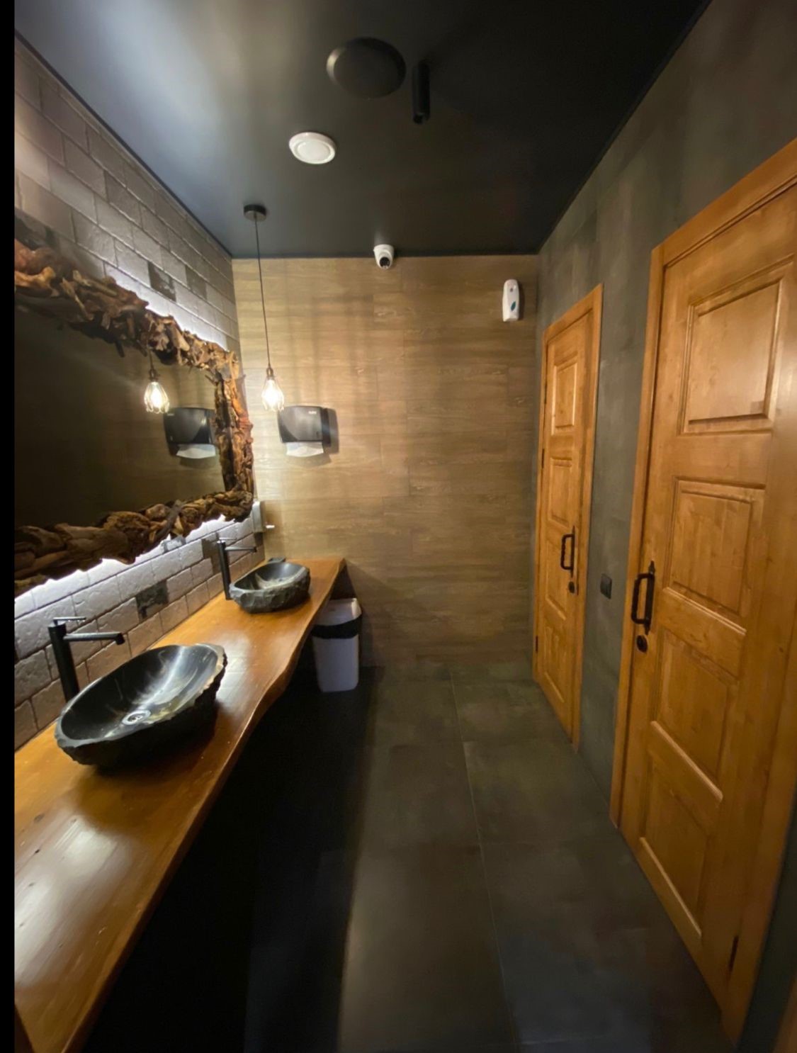 Бар расположен в самом центре Адлера, на набережной Черного моря. Основная задача была создать атмосферу уюта и дружелюбия, способствующую расслаблению и общению. На проект и его реализацию ушло три месяца. В основе интерьера лежит зеленый цвет и дерево. Особое место в интерьере занимают светильники, созданные по моему эскизу из коры пробкового дерева, а так же зеркало в санузле из дрифтвуда.
