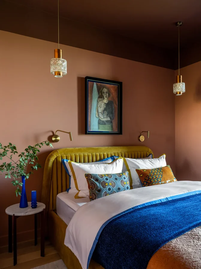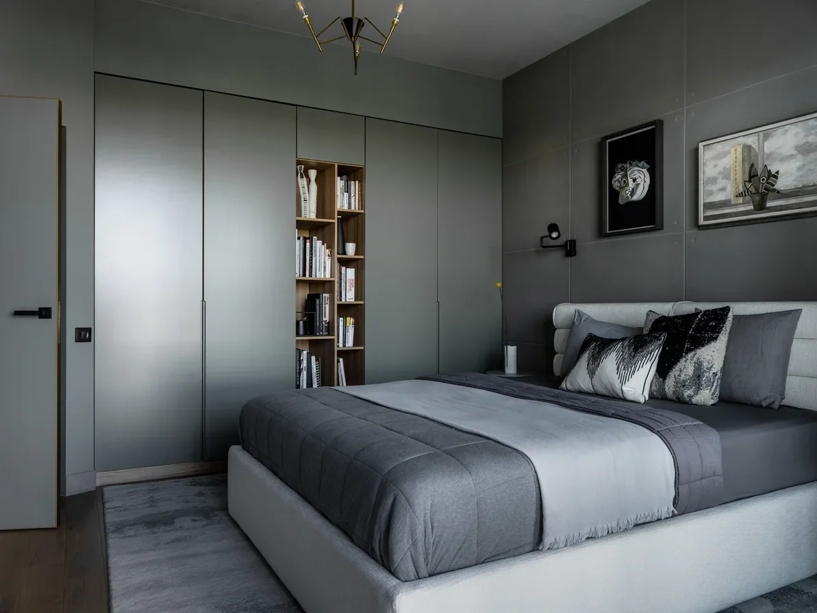 Зодиак. Покровское-Стрешнево 86 кв.м. Москва Интерьер построен вокруг ретро-палитры в серо-голубых оттенках и терракоты с ярким акцентом в ванной. Создавая ретро-настроение, выбирали мебель с характерными силуэтами того времени и предметы mid- century. Проект получился, как кадр из старого фильма, — сдержанный, стильный и романтичный.