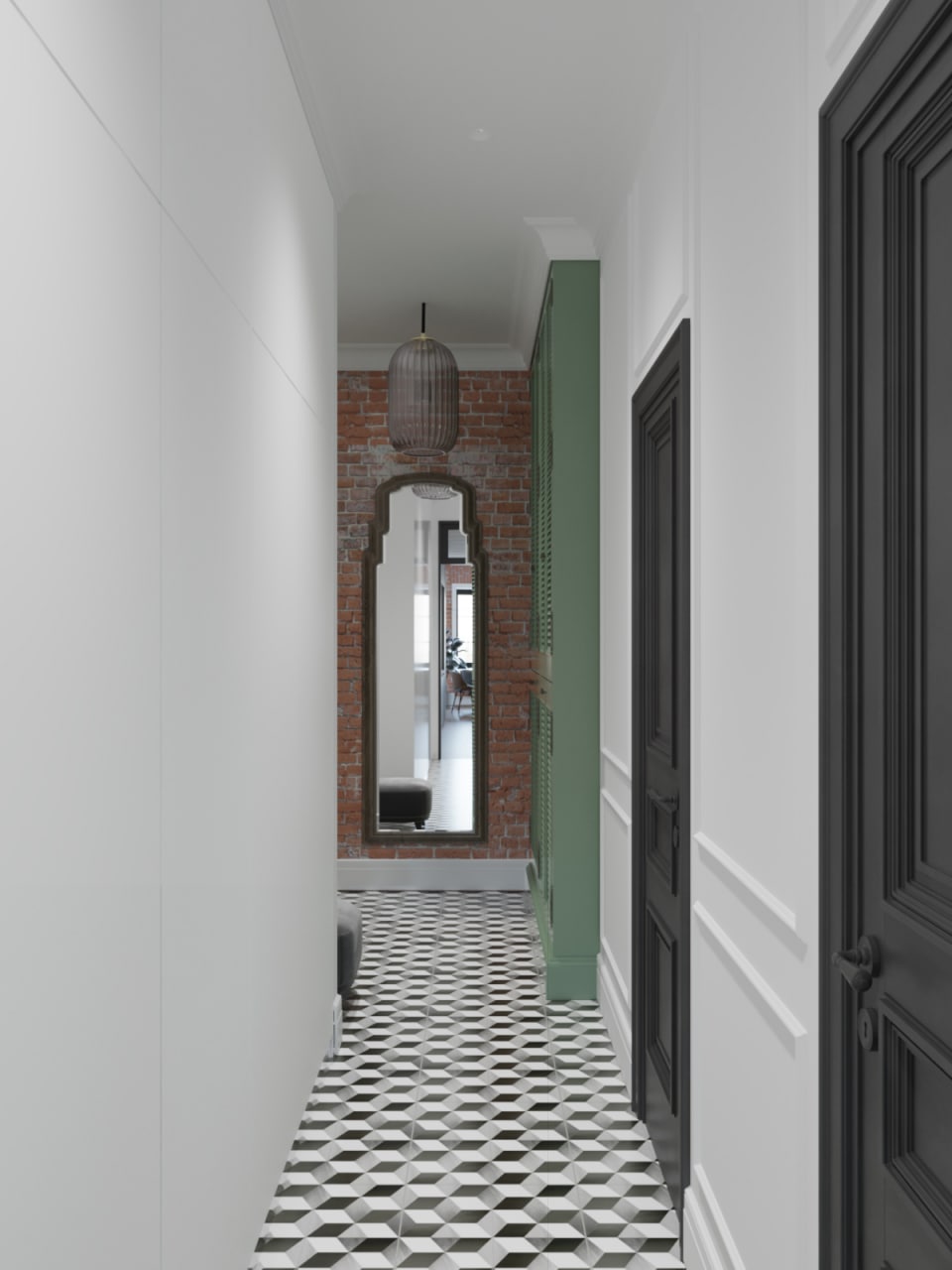 Квартира на Тимура Фрунзе 101 кв.м. Москва Заказчики этого проекта — творческие люди. Они мечтали о квартире именно в доходном доме — с высокими потолками, толстыми стенами и ощущением времени. Мы сохранили оригинальную кирпичную кладку, а в мебели использовали винтажные оттенки зеленого и желтого. Интерьер получился сдержанным, но выразительным, с легким налетом ретро и уважением к архитектуре дома.