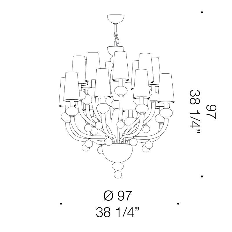 Madmoiselle — это гламурная и стильная люстра, вдохновленная иконами высокой моды. Она считается современной люстрой, которая, с другой стороны, сохраняет традиционные техники стеклодувного дела. Контраст между абажурами и глянцевой отделкой плафонов делает ее оригинальным выбором для шикарного интерьера.