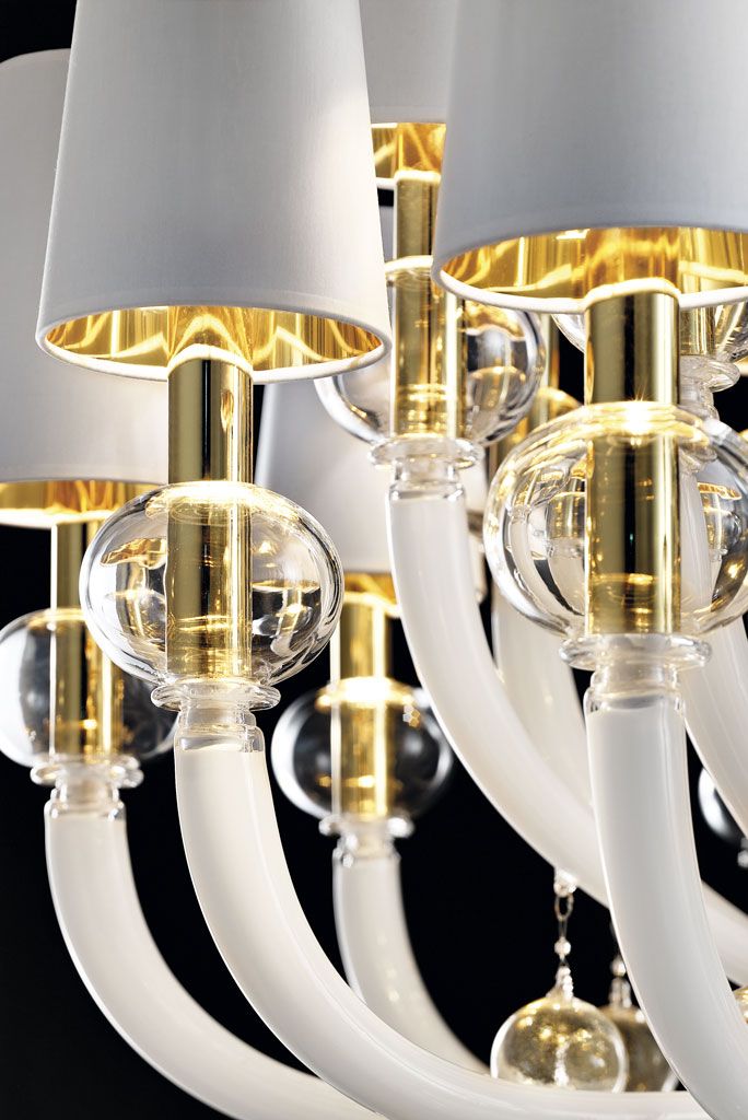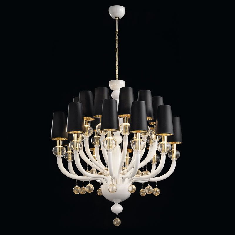 Madmoiselle — это гламурная и стильная люстра, вдохновленная иконами высокой моды. Она считается современной люстрой, которая, с другой стороны, сохраняет традиционные техники стеклодувного дела. Контраст между абажурами и глянцевой отделкой плафонов делает ее оригинальным выбором для шикарного интерьера.