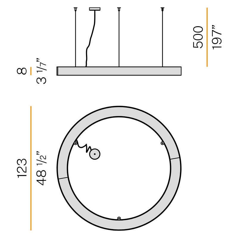 Алюминиевое кольцо с нижним пропускающим экраном из поликарбоната опалового цвета. Доступны в настенном / потолочном и подвесном вариантах. Излучение прямого света обеспечивается светодиодным модулем с технологией DALI / PUSH DIM на всех версиях. Кольцо в конечном итоге отделано полиакриловой краской белого, черного, бронзового или декорированного вручную позолотой. Пользовательские цвета доступны по запросу. Подвесная версия поставляется с 3 стальными тросами, регулируемыми по длине (6 кабелей для диаметра 180 см). Версия для стен / потолков поставляется с упрощенным монтажным комплектом. Идеально подходит для использования в жилых помещениях, композиции для офисов, гостиничных и общественных помещений. Доставка товара в единственном экземпляре уже в сборе.