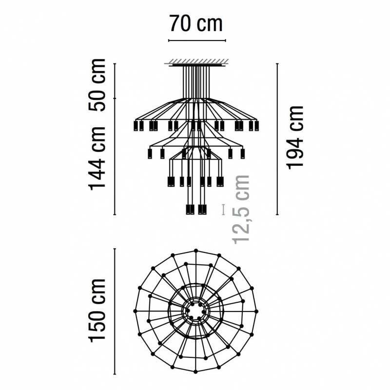 Подвесные светильники Wireflow 3D - это система подвесных светильников, разработанная Arik Levy. Коллекция Wireflow 3D - это новая интерпретация и переосмысление классической люстры. Опорная конструкция для светильника Wireflow 3D построена с использованием черного электрического кабеля и светодиодных источников света мощностью 4,5 Вт. Светильник характеризуется именно этими материалами, которые определяют коллекцию. Электрические кабели коллекции Wireflow отображают трехмерную геометрию, которая, несмотря на их большой размер, создает ощущение прозрачности, которое определяет захватывающее графическое ощущение этого светильника. Коллекция Wireflow 3D доступна с 15, 42 и 43 источниками света.