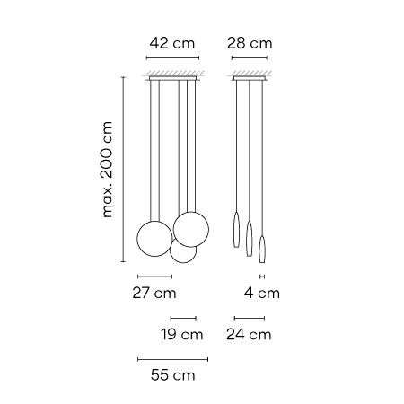 Коллекция подвесных светильников Cosmos разработана дизайнерами Lievore, Altherr, Molina и состоит из подвесных световых скоплений сплющенных форм разных размеров, которые создают оптическую иллюзию висящих сфер, которые, кажется, плавают в воздухе.