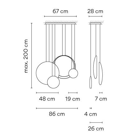 Коллекция подвесных светильников Cosmos разработана дизайнерами Lievore, Altherr, Molina и состоит из подвесных световых скоплений сплющенных форм разных размеров, которые создают оптическую иллюзию висящих сфер, которые, кажется, плавают в воздухе.