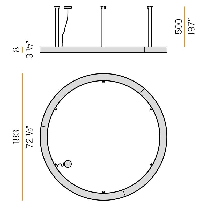 Алюминиевое кольцо с нижним пропускающим экраном из поликарбоната опалового цвета. Доступны в настенном / потолочном и подвесном вариантах. Излучение прямого света обеспечивается светодиодным модулем с технологией DALI / PUSH DIM на всех версиях. Кольцо в конечном итоге отделано полиакриловой краской белого, черного, бронзового или декорированного вручную позолотой. Пользовательские цвета доступны по запросу. Подвесная версия поставляется с 3 стальными тросами, регулируемыми по длине (6 кабелей для диаметра 180 см). Версия для стен / потолков поставляется с упрощенным монтажным комплектом. Идеально подходит для использования в жилых помещениях, композиции для офисов, гостиничных и общественных помещений. Доставка товара в единственном экземпляре уже в сборе.