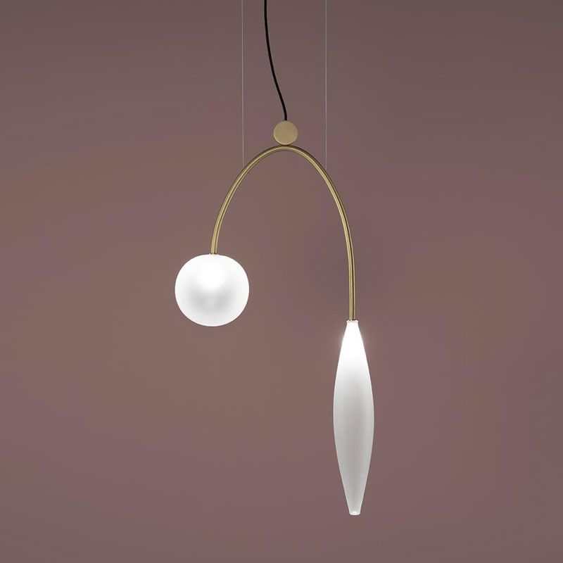Винтажные формы в современной транспозиции: коллекция подвесных, напольных и настенных светильников, вдохновленных изогнутыми и тонкими линиями камертона. Сочетание двух благородных материалов: матовой натуральной латуни и матового стекла. Изгибы стекла и дизайн конструкции создают тонкую игру баланса.
