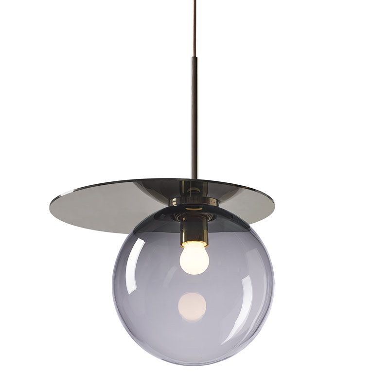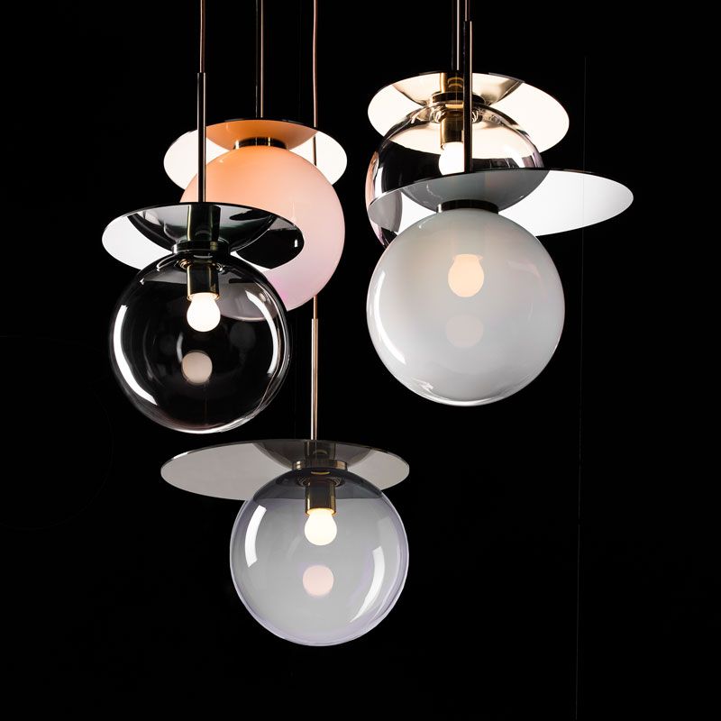 Вдохновленная взаимосвязью между геометрическими объектами и их тенями, коллекция Umbra представлена элегантными подвесками с утонченными деталями. Его металлическая пластина образована идеально эллиптической тенью, отбрасываемой шаром с боковой подсветкой, отражающей красочное изделие из выдуваемого через рот хрусталя.