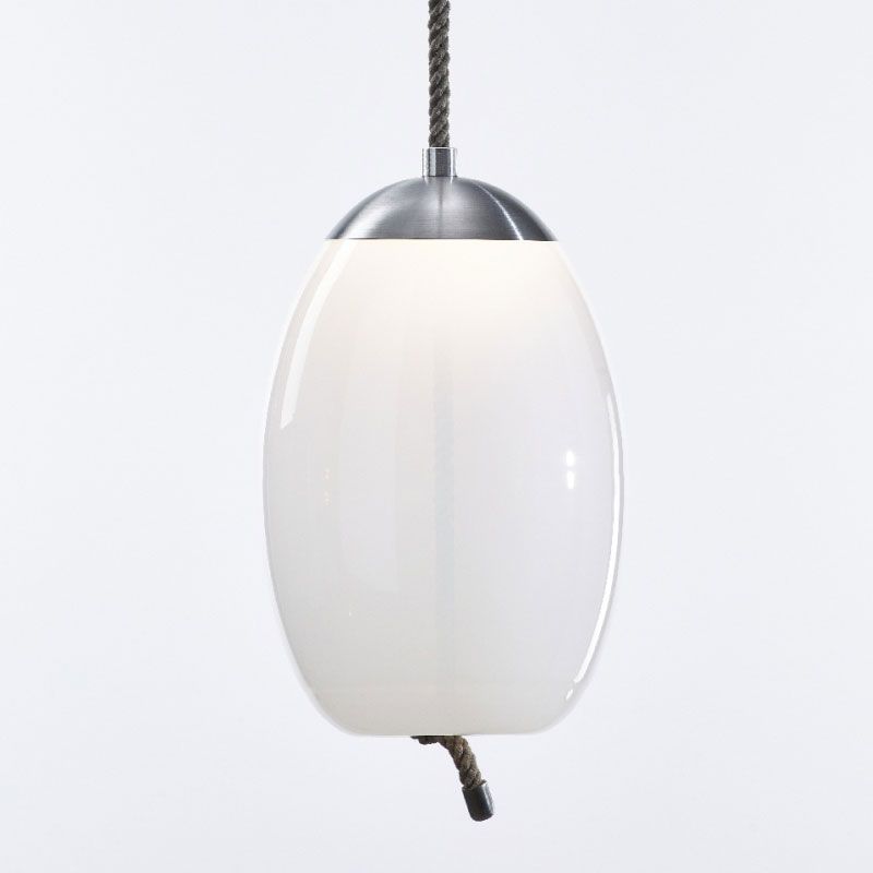 Полноразмерные шары разных форм и размеров пронизаны прочной веревкой, которая заканчивается в основном элементе дизайна коллекции – узле, который словно втягивает дно стекла внутрь, создавая завораживающий пластиковый эффект. Светодиодный источник света расположен под элегантным колпаком из штампованного металла и защищен снизу выдувным вручную опаловым рассеивателем. Другой металлический элемент служит для закрытия конца веревки. Светильники Knot прекрасно подходят как для частных, так и для общественных помещений и особенно эффектно смотрятся над обеденными столами.