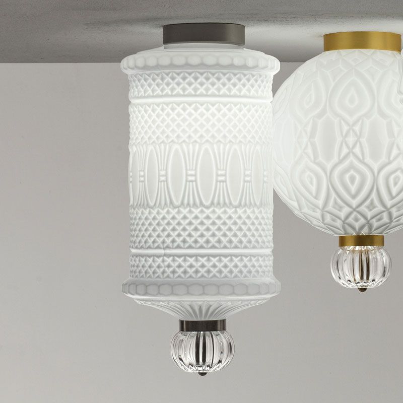 Коллекция OMG, аббревиатура от Oh My Glass! - это дань красоте формованного стекла. Разнообразие форм, размеров и отделки для создания «симфонии» подвесов и потолочных светильников. Вариации цвета стекла, отделки рамы и форм делают возможными различные комбинации. Стекло доступно прозрачное или белое. Структура и потолочное крепление: матовый никель или золото.