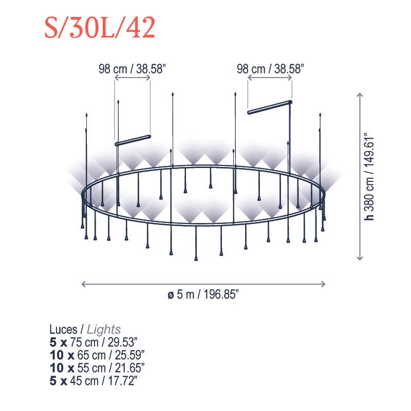 Skybell — это обширная система световых конструкций, разработанная для адаптации к любому типу применения. Их главная характеристика — это создаваемый ими образ: они ненавязчивы и жизнерадостны. Они дарят ощущение фантазии и свободы в своих применениях, поскольку их можно комбинировать в различных вариантах, смешивая 4 размера, чтобы создать более индивидуальную и динамичную концепцию светильника, или же сохранять все «колокола» одинаковой длины, создавая более традиционный образ. В зависимости от предпочтений пользователя, положение «колоколов» можно легко изменить с помощью разъема (джека), который позволяет подключать их к сети одним щелчком. Эта функция подходит для всей коллекции Skybell.