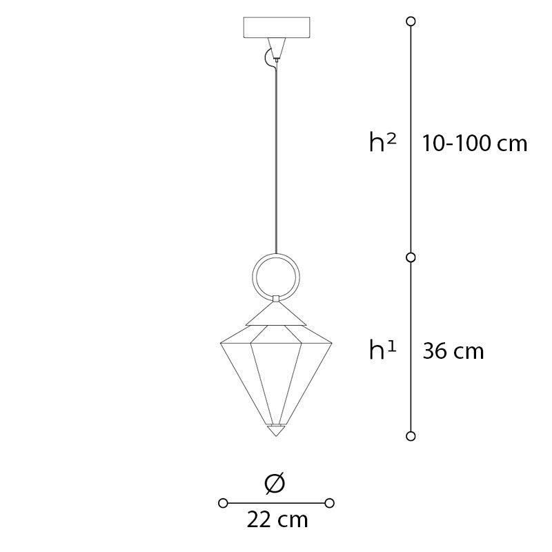 Плафоны изготовлены из выдувного хрусталя — прозрачного или травлёного, что усиливает глубину и выразительность светового эффекта. Металлические элементы, включая конические детали корпуса и подвесное кольцо, доступны в отделках матовый чёрный, серый и light gold, позволяя интегрировать модель в различные интерьерные концепции.