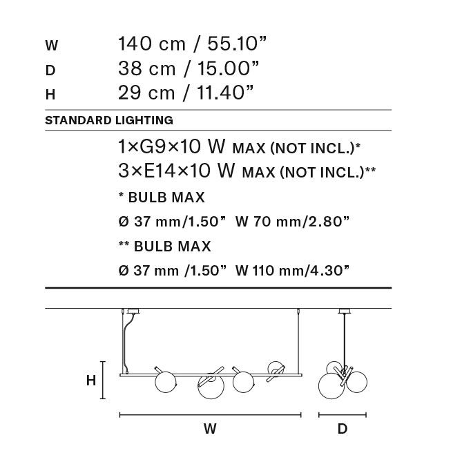 1x10 W G9 + 3x10 W E14