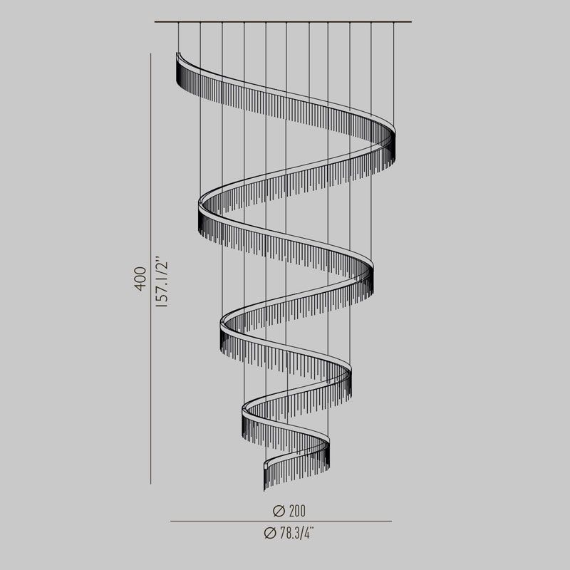 Eclisse Twister покоряет даже самые большие пространства. Модульность изделия позволяет создавать инсталляции бесконечного количества размеров и форм. Красота светящейся спирали завораживает зрителя.