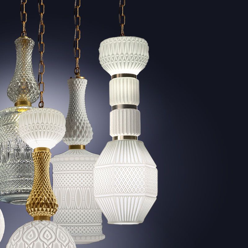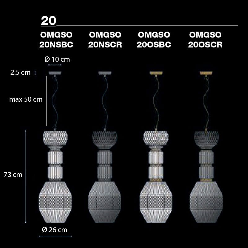 Коллекция OMG, аббревиатура от Oh My Glass! - это дань красоте формованного стекла. Разнообразие форм, размеров и отделки для создания «симфонии» подвесов и потолочных светильников. Вариации цвета стекла, отделки рамы и форм делают возможными различные комбинации. Стекло доступно прозрачное или белое. Структура и потолочное крепление: матовый никель или золото.