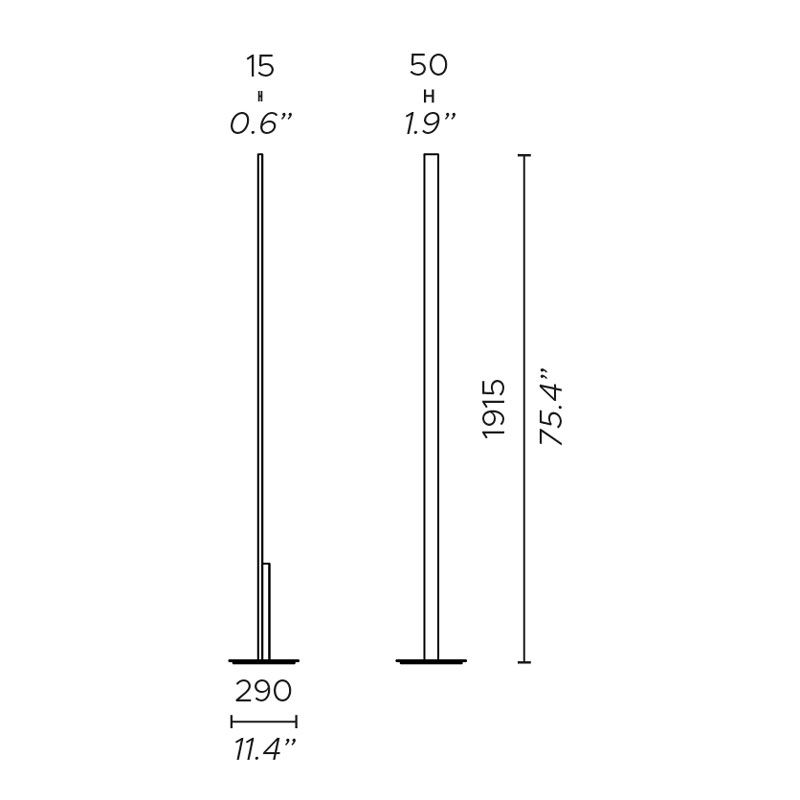 Fly предлагается в напольном исполнении с двумя вариантами высоты: Fly FL - 190 см; Fly Long FL - 250 см. Обе версии обеспечивают двойное излучение света, прямое и непрямое. Подсветка может быть приглушена благодаря встроенному сенсорному управлению с двух сторон. Двойной переключатель на корпусе.