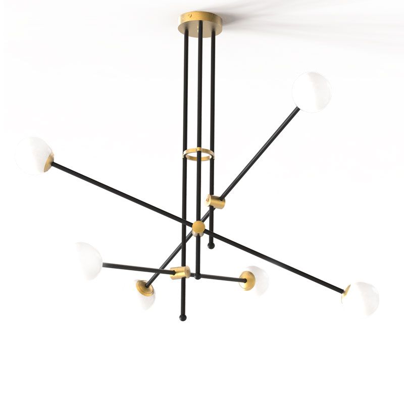Подвеска из окрашенного в черный цвет металла с рассеивателем из белого стекла и 6 светодиодными лампами G9.