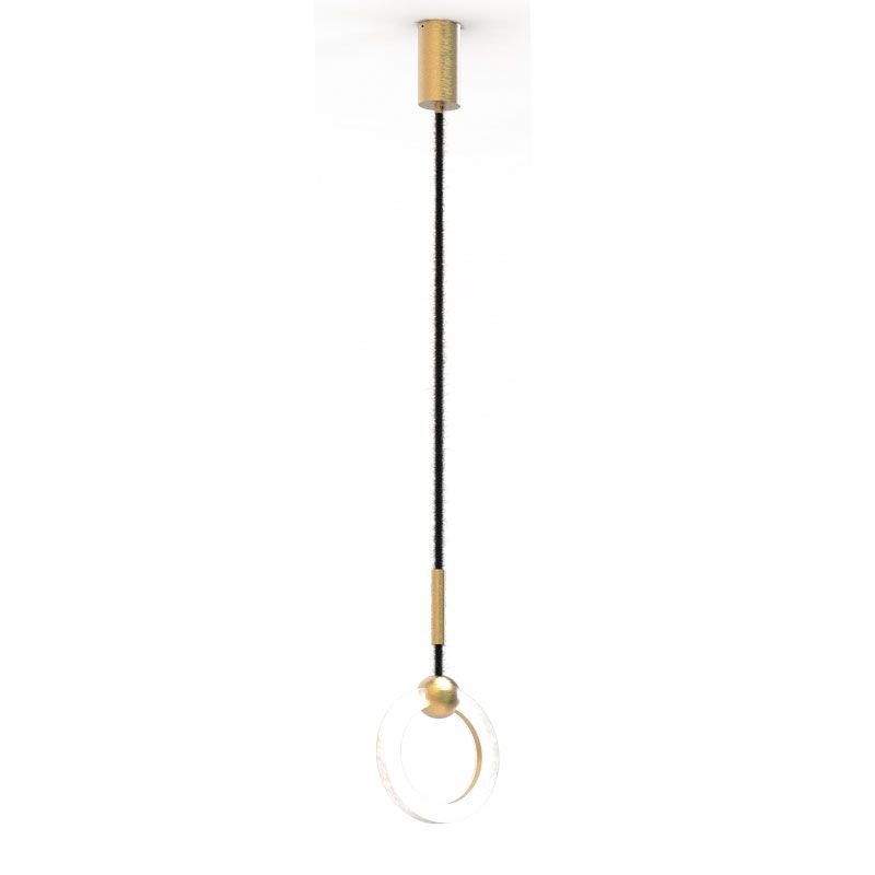 Круглая форма и матовая латунная отделка придают светильнику Layla элегантность, неподвластную времени, а кабель, обтянутый черной тканью, добавляет изысканности.