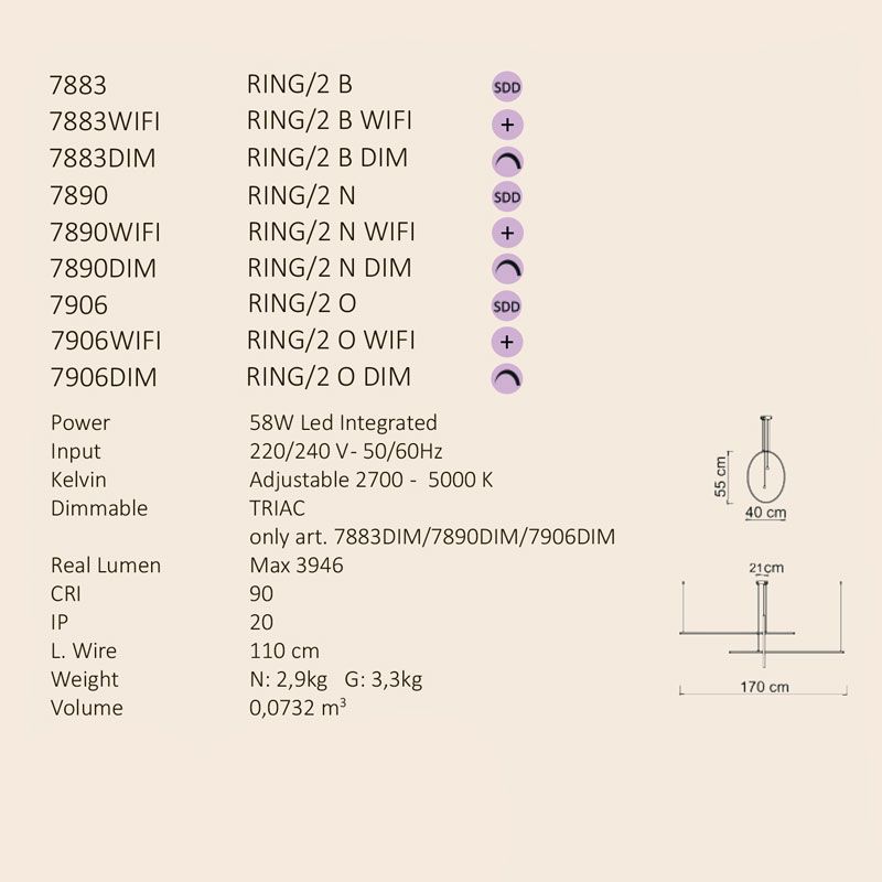 Коллекция Ring – это сочетание геометрических форм, которое оживляет эту коллекцию. Ring – это строгий и практичный, но в то же время шикарный и эффектный подвесной светильник, идеально подходящий для классических и современных интерьеров, где он максимально раскрывает свою оригинальность.