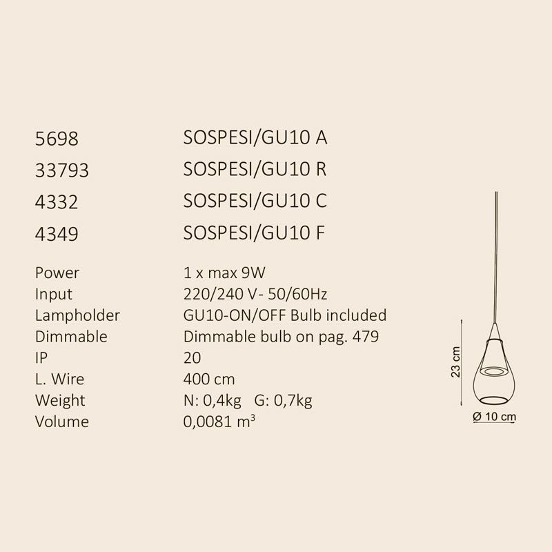 Артикул: SOSPESI Hanging Lamp GU10 (без крепления)