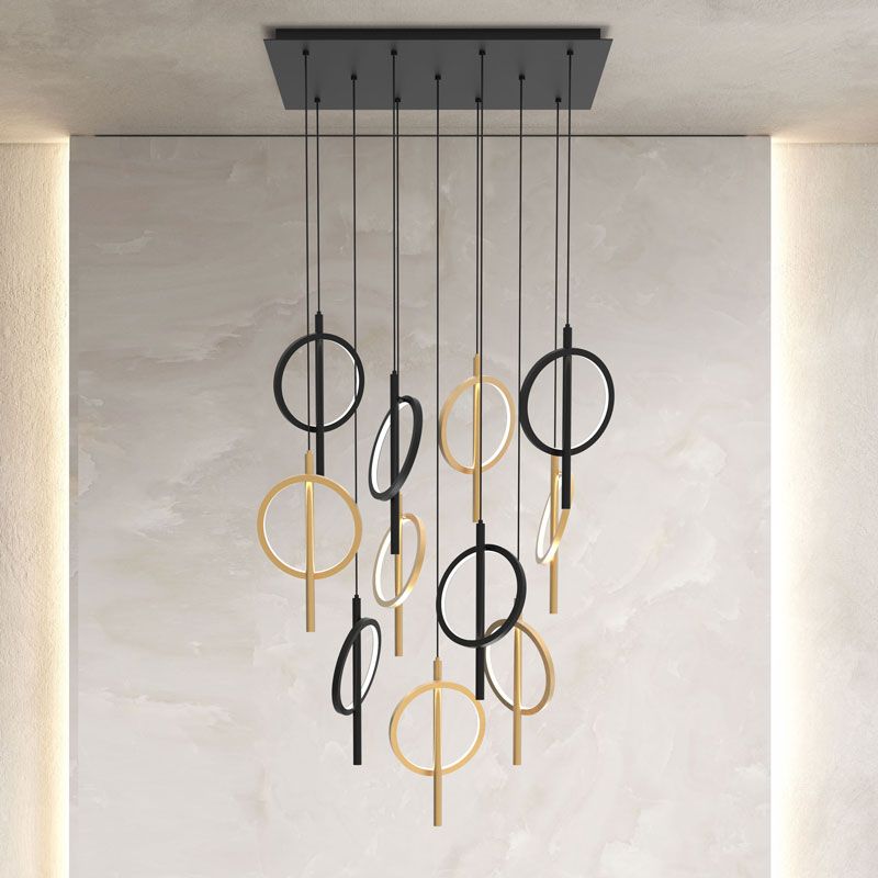 Подвесной светильник Liam доступен как в виде отдельного модуля, так и без основания, что позволяет интегрировать его с модульными основаниями для создания индивидуальных конфигураций. Освещение обеспечивается встроенной светодиодной лентой, проходящей вдоль кольца, что обеспечивает равномерное и эффективное распределение света. Каркас выполнен из матовой латуни или матово-черного цвета, что обеспечивает долговечность и изысканный внешний вид. Черный тканевый кабель повышает качество конструкции.