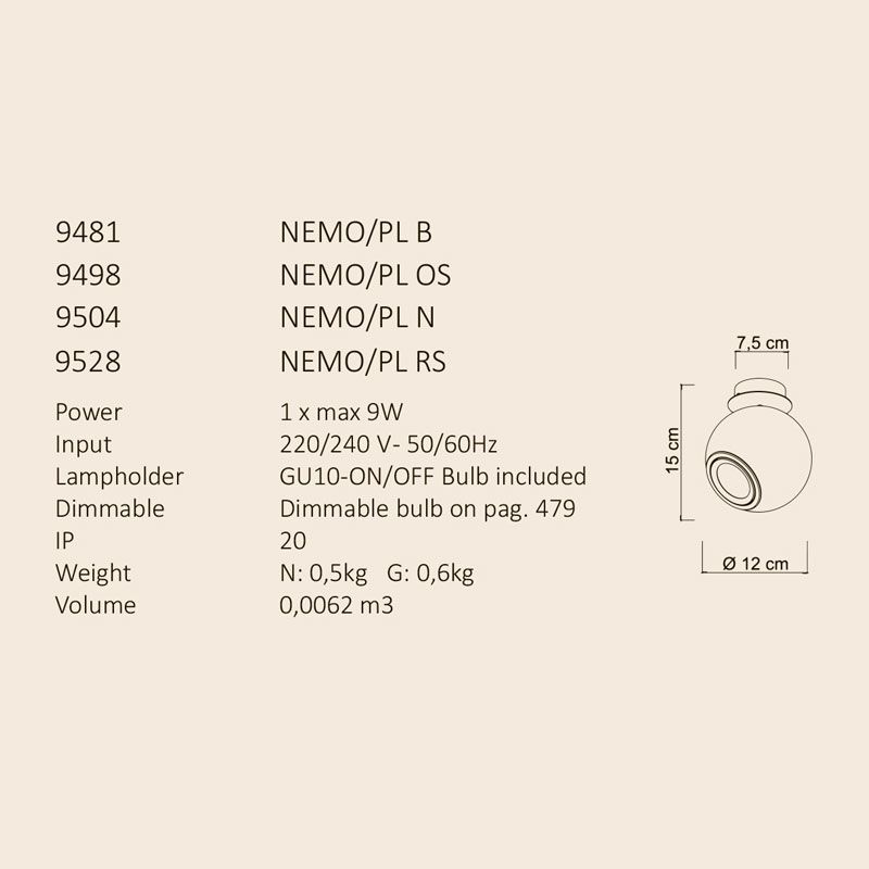 Коллекция Nemo отличается универсальностью и изысканным дизайном. Она доступна как в подвесной версии на тросе, так и в базовой версии, которую можно установить на потолок или стену. Ключевая особенность — регулируемость, позволяющая точно направлять свет в соответствии с конкретными потребностями. Освещение обеспечивается легко заменяемой лампой GU10.