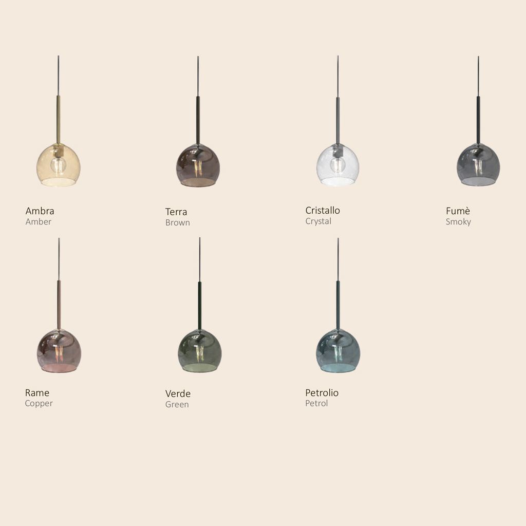 Коллекция Infinity включает подвесные светильники из боросиликатного стекла, изготовленные вручную опытными мастерами-стеклодувами. Они доступны в четырёх размерах. Для отделки используется гальваническое покрытие в бронзовом, дымчатом, медном и нефтяном вариантах, а для янтарного и зелёного — зеркальное покрытие для создания отражающего эффекта. Опорные каркасы, изготовленные из металлов с гармонирующей отделкой, обеспечивают эстетическую целостность и структурную прочность. Прозрачные кабели из ПВХ минимизируют визуальное воздействие, подчёркивая формальную чистоту рассеивателя. Infinity сочетает в себе мастерство исполнения, высококачественное стекло и продуманный дизайн, обеспечивая высокую светоотдачу.