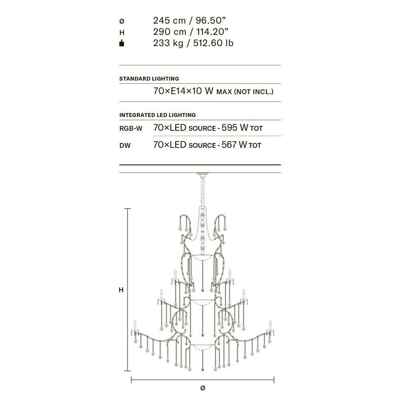 Древний режим - это тенденция, выбранная для Aqaba, произведения искусства, сотканного из света и отличающегося неоспоримой элегантностью и великолепием. Благодаря хрустальным гирляндам Aqaba напоминает о венецианском великолепии эпохи, которой восхищались во всем мире.