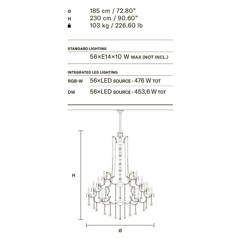 Древний режим - это тенденция, выбранная для Aqaba, произведения искусства, сотканного из света и отличающегося неоспоримой элегантностью и великолепием. Благодаря хрустальным гирляндам Aqaba напоминает о венецианском великолепии эпохи, которой восхищались во всем мире.