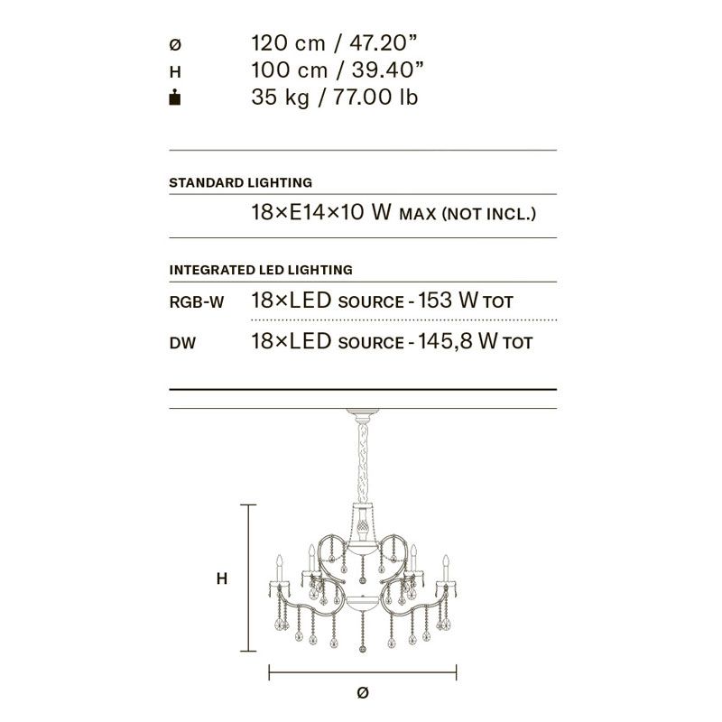 Древний режим - это тенденция, выбранная для Aqaba, произведения искусства, сотканного из света и отличающегося неоспоримой элегантностью и великолепием. Благодаря хрустальным гирляндам Aqaba напоминает о венецианском великолепии эпохи, которой восхищались во всем мире.