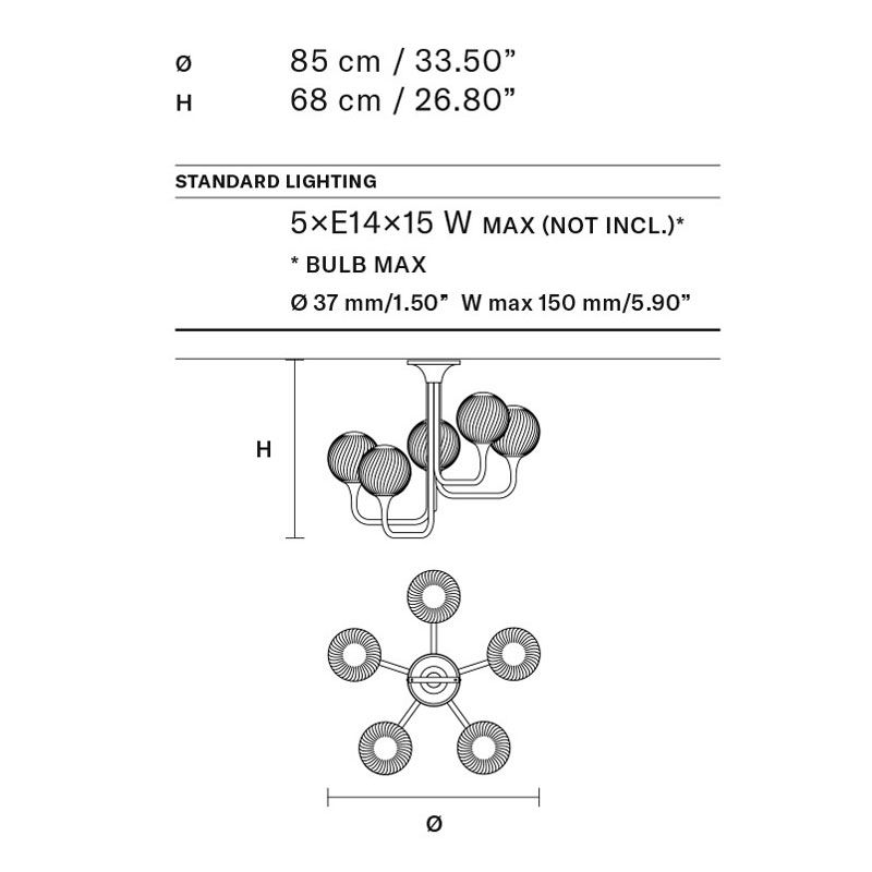 Tee indoor - это исследовательский дизайн, балансирующий между строгостью и элегантностью, эстетически выделяющийся своей изогнутой формой. Световые сферы оживают благодаря контурам, отражающим волнистую природу света, соединенные на органических стеблях, напоминающих грациозность цветка каллы.