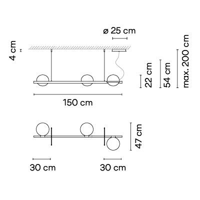 Классический глобус, слегка приплюснутый здесь, эволюционирует в сторону более органичной формы, а подвесная версия с почти незаметной кабельной опорой подчеркивает ощущение парения.
