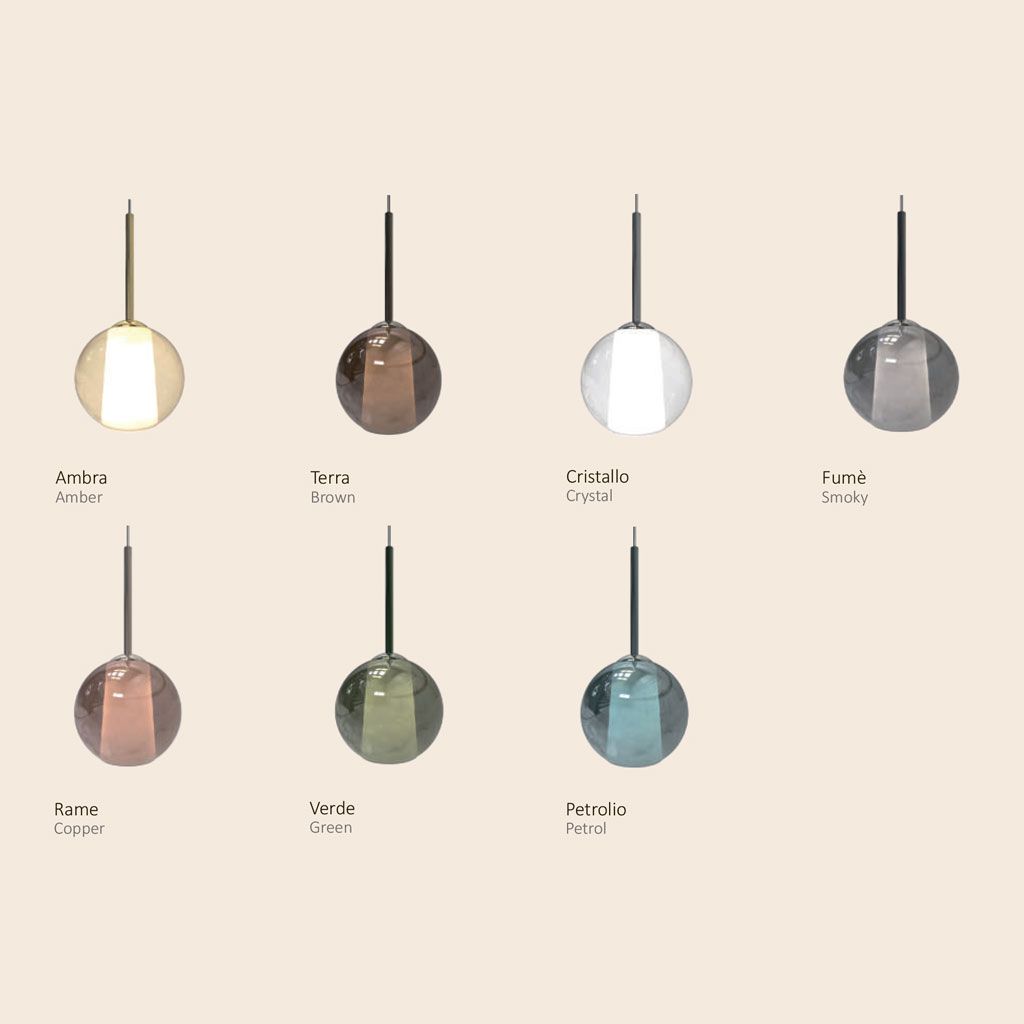 Коллекция Emy включает подвесные светильники из боросиликатного стекла, изготовленные вручную итальянскими мастерами-стеклодувами. Внутренний конус с сатинированной отделкой также служит колпаком для лампы. Доступные варианты отделки: бронзовый, дымчатый, медный и петролеум, получаемые методом гальванизации, а янтарный и зелёный варианты украшены зеркальным декором. Опорные крепления, идеально гармонирующие по цветовой гамме, ещё больше подчеркивают изысканную эстетику этих светильников. Каждая деталь тщательно продумана, включая прозрачный ПВХ-кабель, что обеспечивает чистый, минималистичный дизайн. В результате получается элегантность и функциональность.