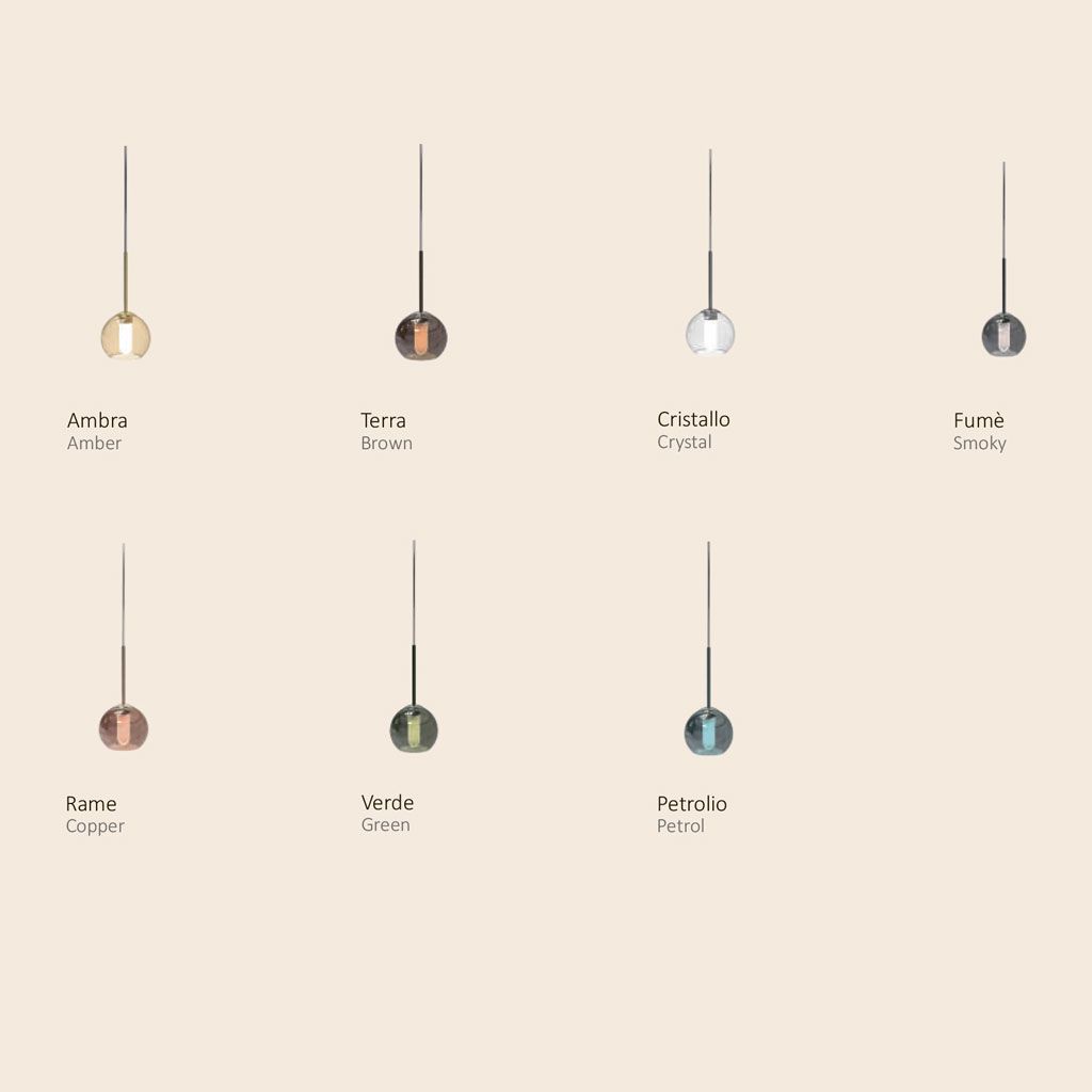 Коллекция Infinity включает подвесные светильники из боросиликатного стекла, изготовленные вручную опытными мастерами-стеклодувами. Они доступны в четырёх размерах. Для отделки используется гальваническое покрытие в бронзовом, дымчатом, медном и нефтяном вариантах, а для янтарного и зелёного — зеркальное покрытие для создания отражающего эффекта. Опорные каркасы, изготовленные из металлов с гармонирующей отделкой, обеспечивают эстетическую целостность и структурную прочность. Прозрачные кабели из ПВХ минимизируют визуальное воздействие, подчёркивая формальную чистоту рассеивателя. Infinity сочетает в себе мастерство исполнения, высококачественное стекло и продуманный дизайн, обеспечивая высокую светоотдачу.