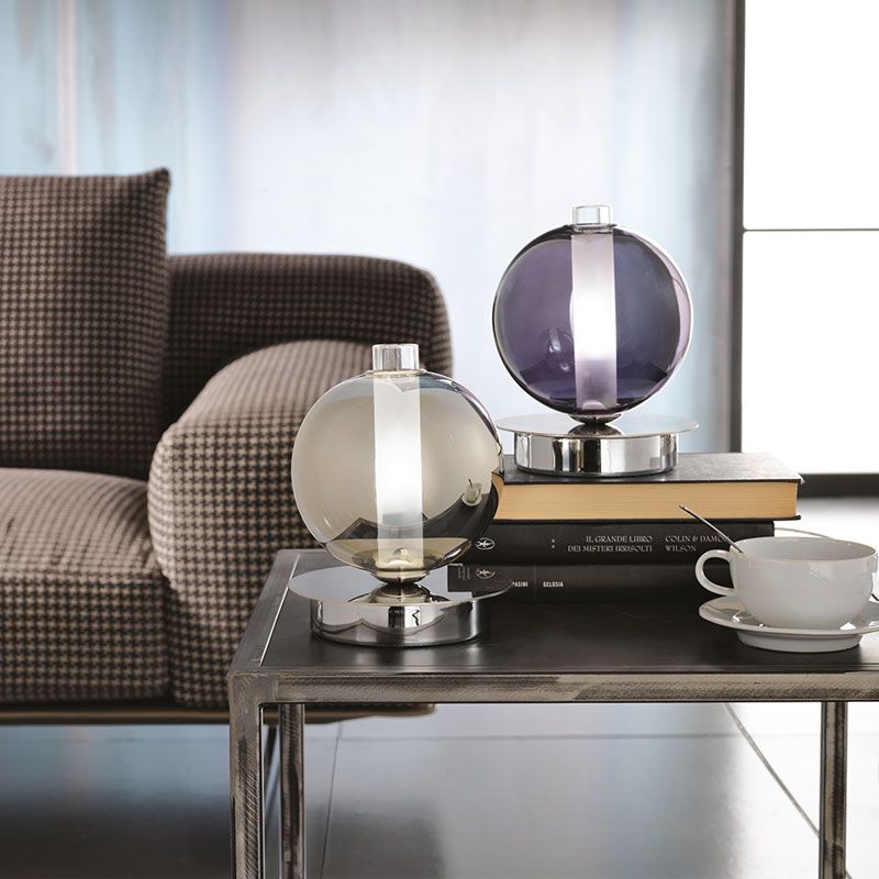 Сферы ручной работы коллекции Eclisse доступны в различных цветовых вариантах, от традиционных до металлизированных, а металлический каркас изготавливается в хромированном исполнении.