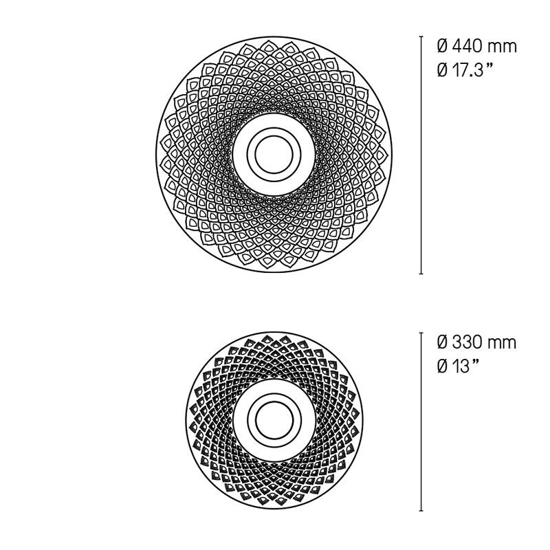 В центре его большой ажурной короны концентрические диски Atmos переходят друг в друга, образуя светящееся сердце. Atmos, старший брат настенного светильника Earth, выделяется своими размерами и многообразием возможных комбинаций декора.