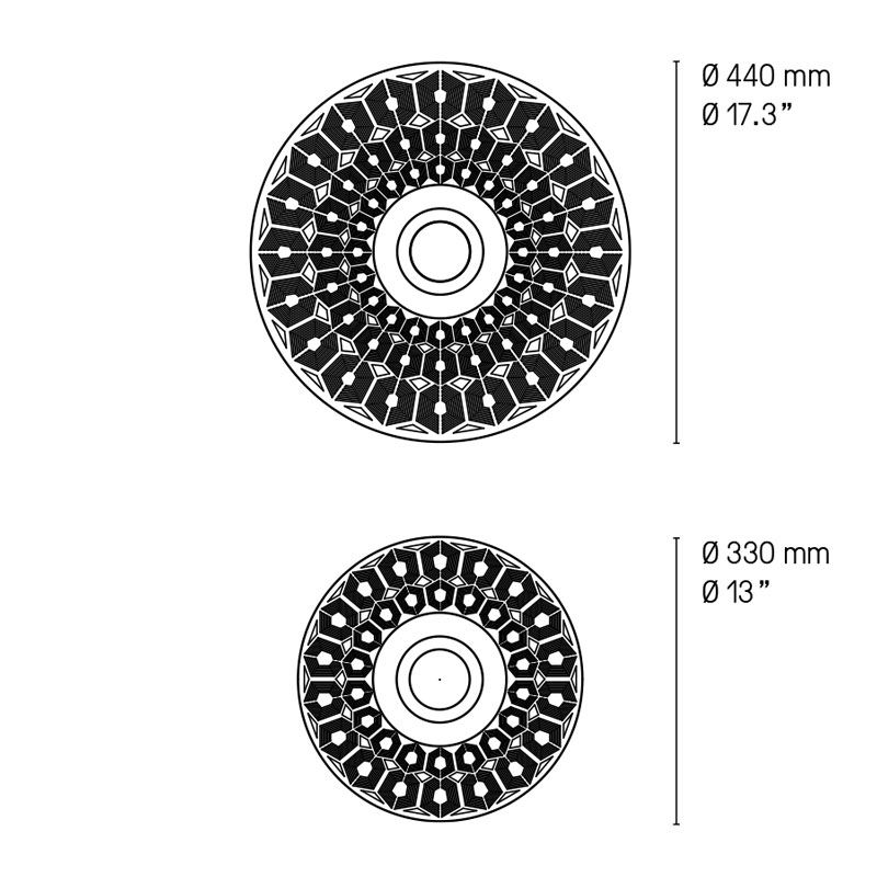 В центре его большой ажурной короны концентрические диски Atmos переходят друг в друга, образуя светящееся сердце. Atmos, старший брат настенного светильника Earth, выделяется своими размерами и многообразием возможных комбинаций декора.