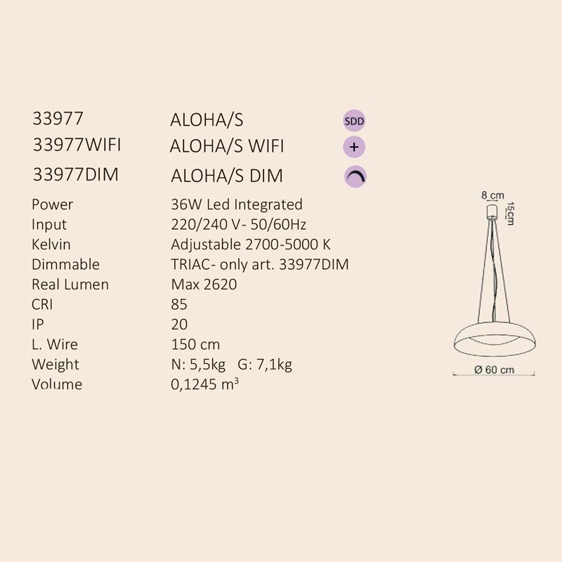 Светильник Aloha выделяется своим минималистичным дизайном. Матово-белая отделка позволяет светильнику гармонично вписаться в окружающую обстановку, создавая гармоничную атмосферу. Этот изящный, но эффектный элемент добавляет стиль, не перегружая пространство.